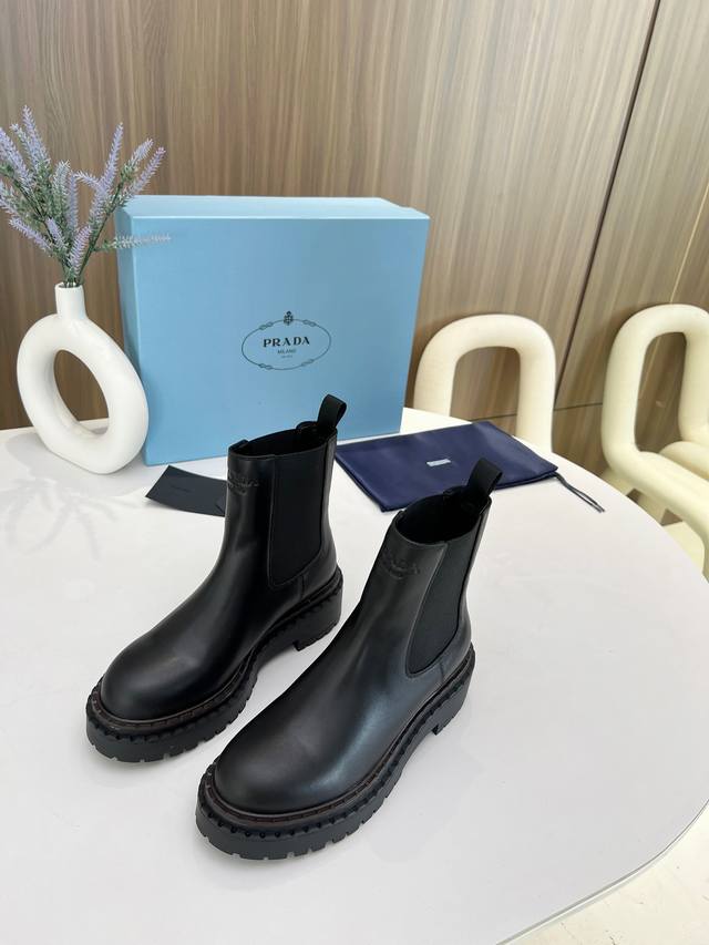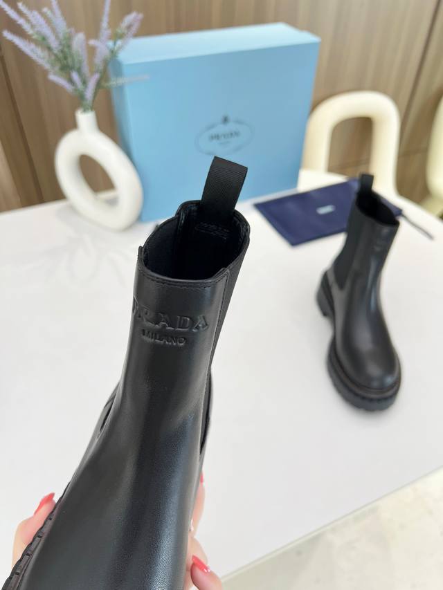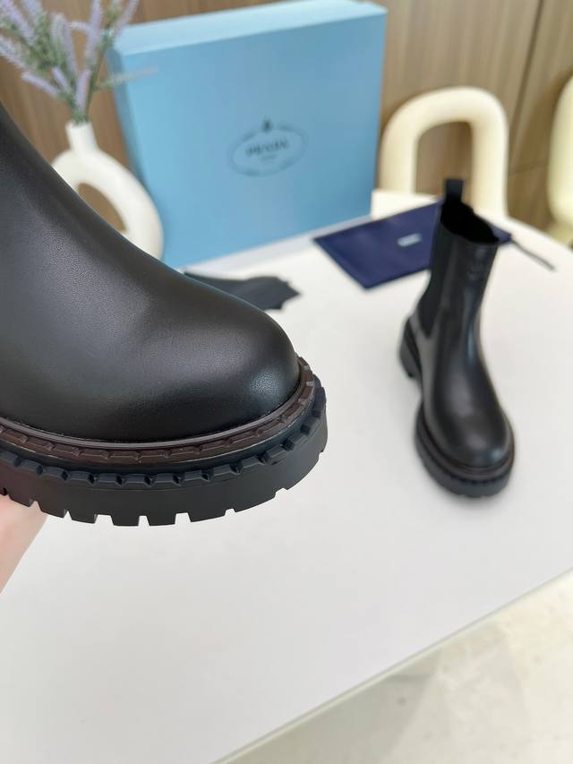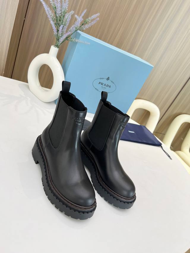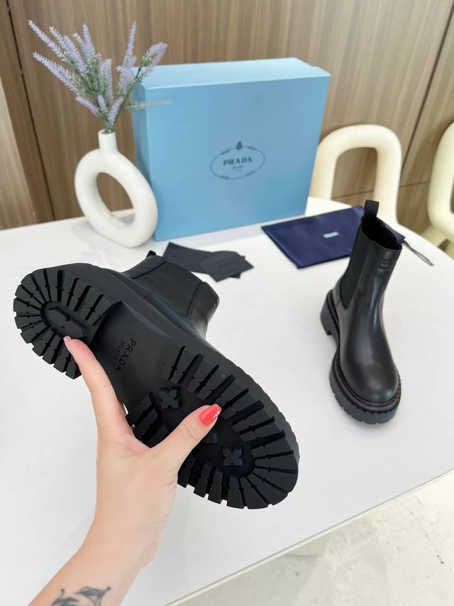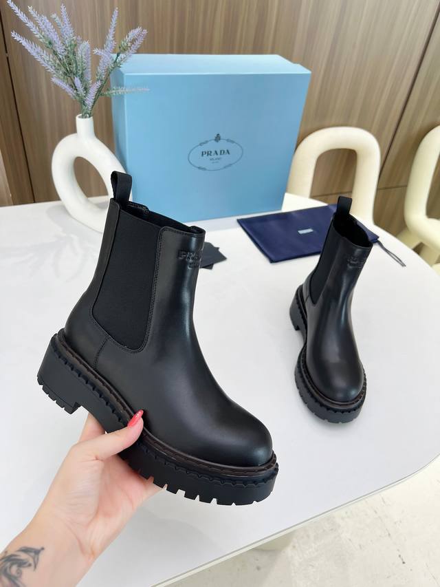 Prada 普拉达 Wa 秋冬新款 金典马丁靴,风格百搭采用厚实鞋底,匠制细节与当代元素增添活力,以全新时尚语言诠释经典。 高度5厘米闪亮登场 小红书各大博主推荐,1-1开发 彰显经典魅力。原版小牛皮 开边珠,羊皮内里 Tpu橡胶发泡大底 码数:35-40