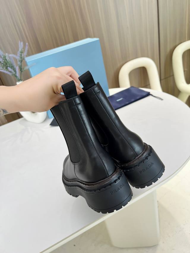 Prada 普拉达 Wa 秋冬新款 金典马丁靴,风格百搭采用厚实鞋底,匠制细节与当代元素增添活力,以全新时尚语言诠释经典。 高度5厘米闪亮登场 小红书各大博主推