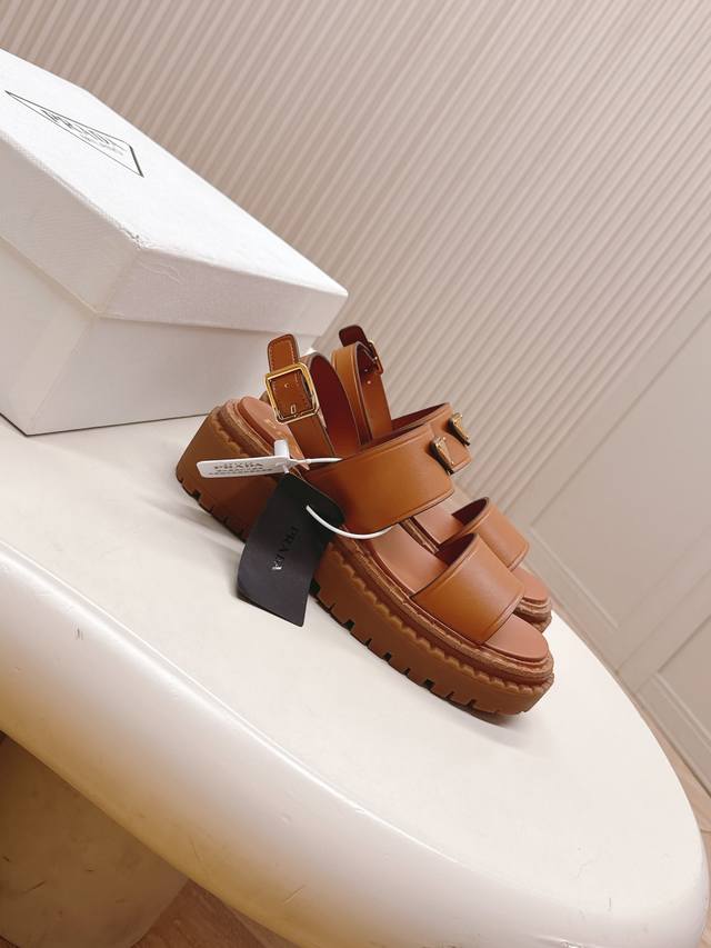 / Prada 普拉达2025春夏新款凉鞋系列 罗马厚底凉鞋 最新走秀款,经典升级 舒适度与时髦度并存 每个颜色搭配都好看,设计搭配不同风格需求 鞋面:原版定制牛皮