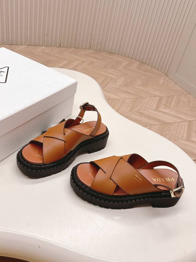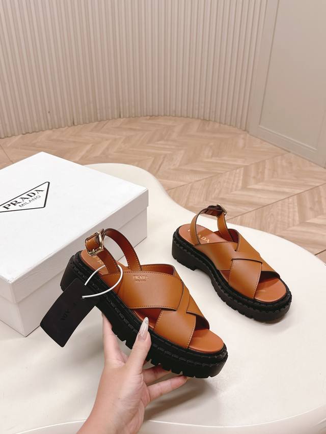 / Prada 普拉达2025春夏新款凉鞋系列 罗马厚底凉鞋 最新走秀款,经典升级 舒适度与时髦度并存 每个颜色搭配都好看,设计搭配不同风格需求 鞋面:原版定制牛皮