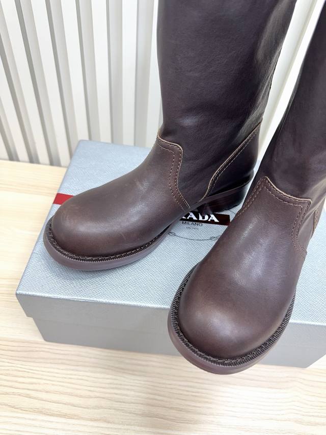 Prada 普拉达25 最新骑士靴! 火爆系列 演绎都市风尚 设计彰显功能性与科技感 经典三角标 展现品牌标志性元素 全牛皮鞋面,上脚无敌舒服的潮牌系列! 原版一致 鞋面开边珠牛皮和牛反绒,垫脚羊皮轻盈防滑生胶大底 女码:35-41 41.定做不退换