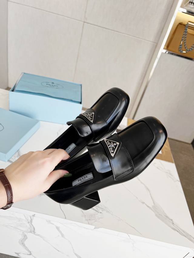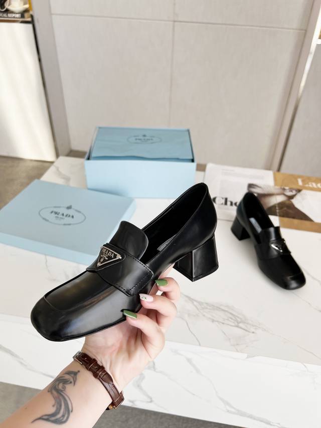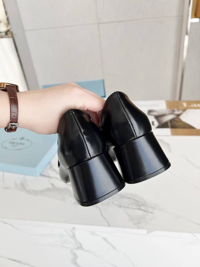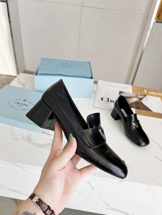Prada 223普拉达春夏新品,玛丽珍单鞋实力来袭 Glow限时店很闪亮的单品 S超级爆系列爆品,各大网红明星乔欣,程潇,刘令姿同款圆头三角扣 玛丽珍单鞋 !时髦百搭Nice单品,各路美女站稳了,独家上新啦!喜欢穿高跟鞋又怕累的姐姐们看过来,方形粗跟绝对让脚步轻盈,百分百不累脚,上脚稳稳的轻松!三角标触感凹凸感和原版一致,方圆形粗跟搭配原版意大利真皮大底配制。 开边珠、漆皮 跟高5.5Cm Size: 35-39 41订做