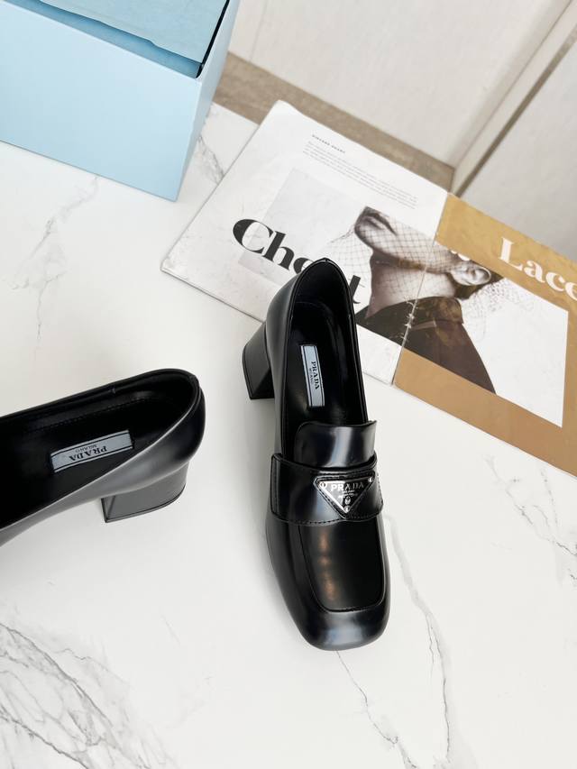 普拉达春夏新款乐福鞋 金属三角形徽标 面:进口牛皮和牛反绒 里:超软牛皮里、垫脚 底:原版轻盈防滑Tpu耐磨大底 Size:35-40...