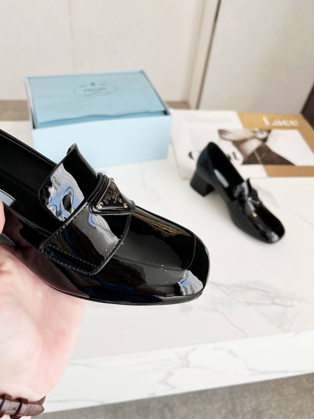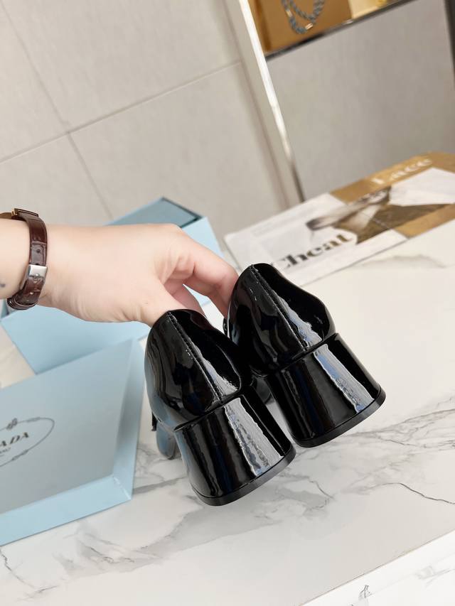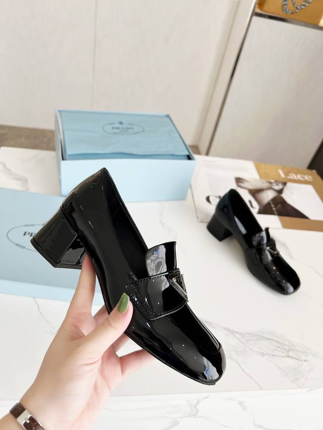 Prada 223普拉达春夏新品,玛丽珍单鞋实力来袭Glow限时店很闪亮的单品 S超级爆系列爆品,各大网红明星乔欣,程潇,刘令姿同款圆头三角扣 玛丽珍单鞋 !时髦百搭Nice单品,各路美女站稳了,独家上新啦!喜欢穿高跟鞋又怕累的姐姐们看过来,方形粗跟绝对让脚步轻盈,百分百不累脚,上脚稳稳的轻松!三角标触感凹凸感和原版一致,方圆形粗跟搭配原版意大利真皮大底配制。 开边珠、漆皮 跟高5.5Cm Size: 35-39 41订做