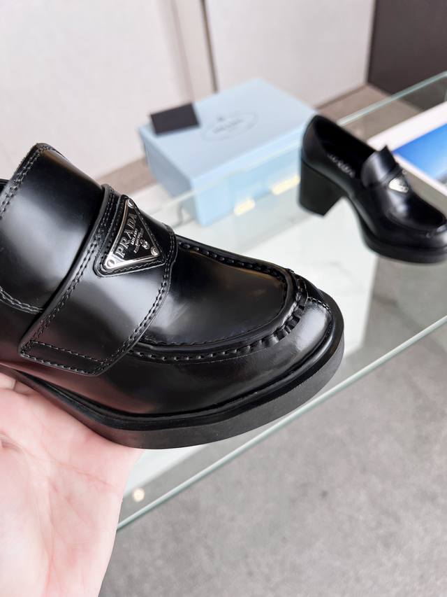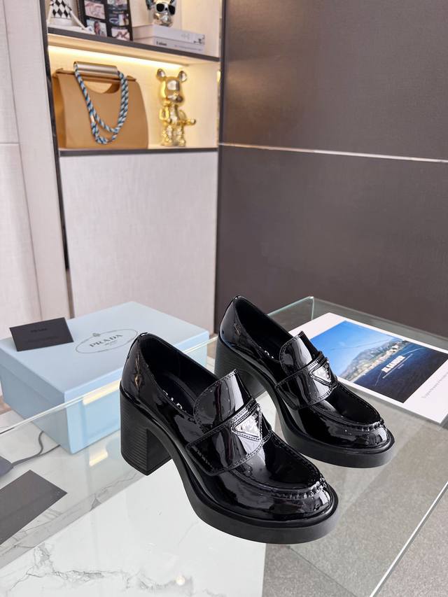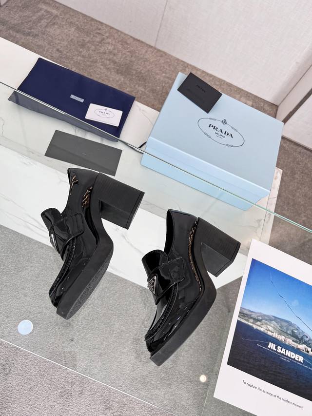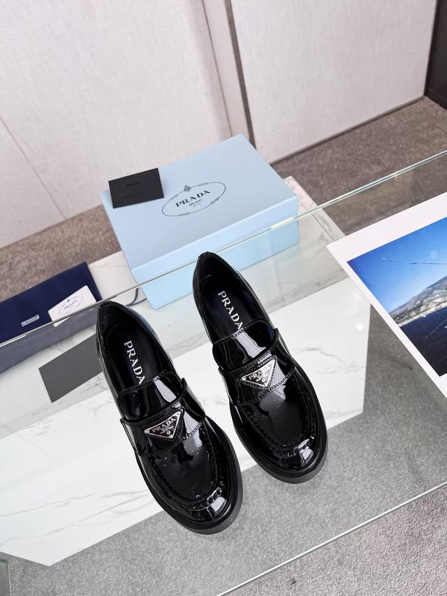 Prada 223普拉达春夏新品,玛丽珍单鞋实力来袭Glow限时店很闪亮的单品 S超级爆系列爆品,各大网红明星乔欣,程潇,刘令姿同款圆头三角扣 玛丽珍单鞋 !时髦百搭Nice单品,各路美女站稳了,独家上新啦!喜欢穿高跟鞋又怕累的姐姐们看过来,方形粗跟绝对让脚步轻盈,百分百不累脚,上脚稳稳的轻松!三角标触感凹凸感和原版一致,漆皮、开边珠牛皮可选跟高8Cm Size: 35-40 41订做