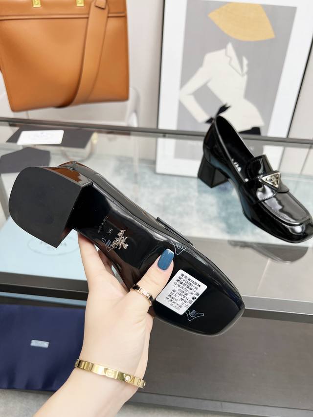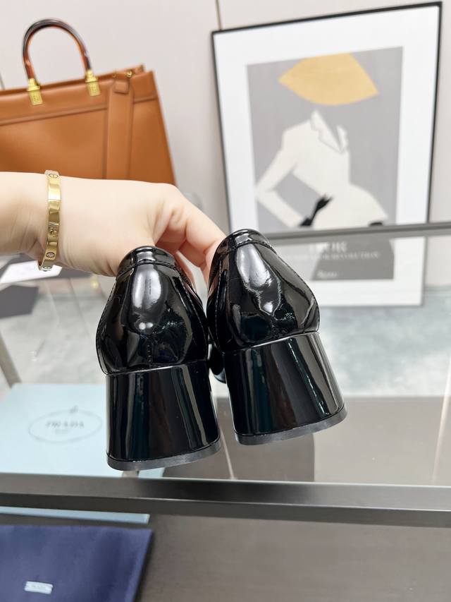 Prada 223普拉达春夏新品,玛丽珍单鞋实力来袭Prada Glow限时店很闪亮的单品 S超级爆系列爆品,各大网红明星乔欣,程潇,刘令姿同款圆头三角扣 玛丽珍单鞋 !时髦百搭Nice单品,各路美女站稳了,独家上新啦!喜欢穿高跟鞋又怕累的姐姐们看过来,方形粗跟绝对让脚步轻盈,百分百不累脚,上脚稳稳的轻松!三角标触感凹凸感和原版一致,方圆形粗跟搭配原版意大利真皮大底配制。 开边珠牛皮、牛漆皮 跟高5.5Cm Size: 35-39 41订做
