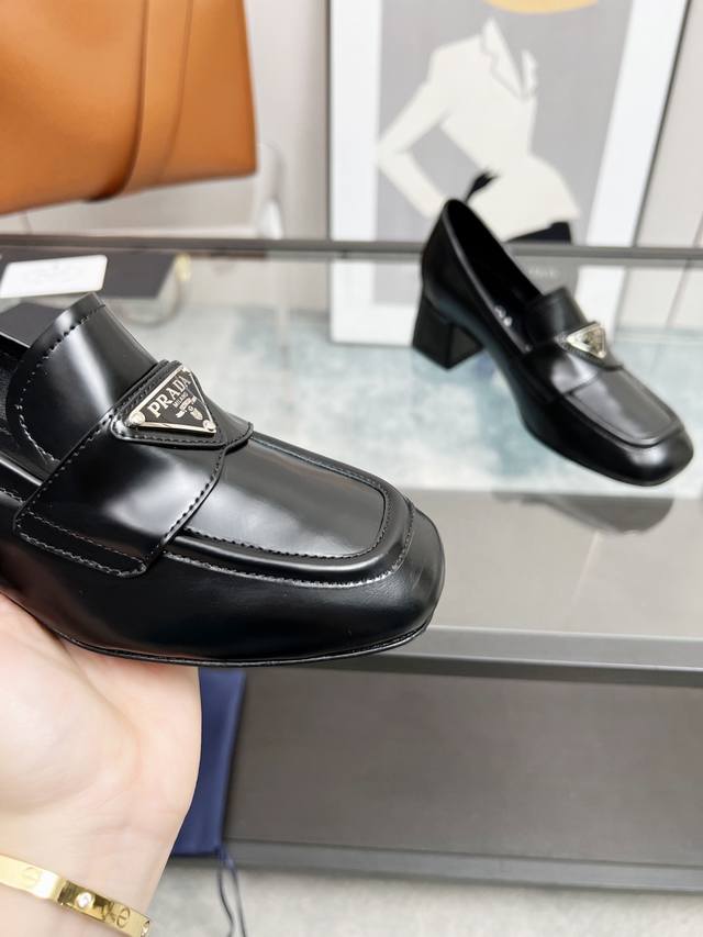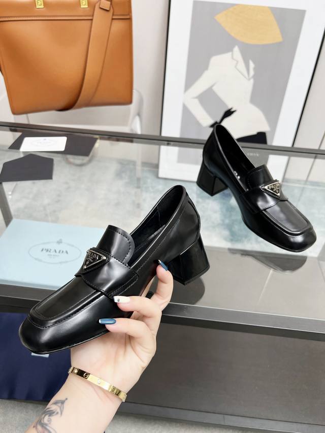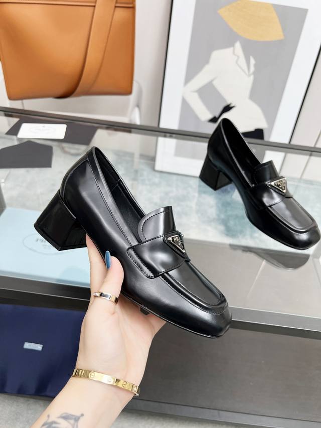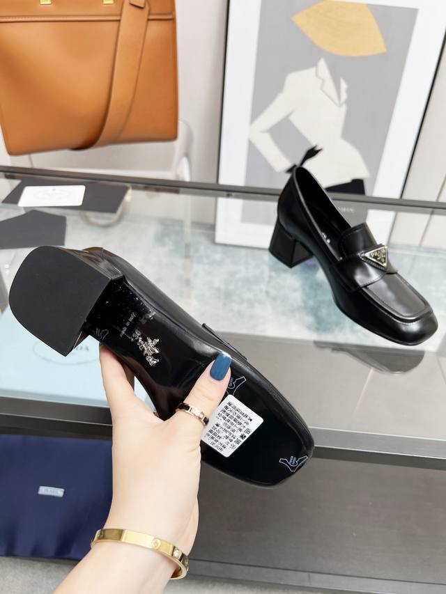 Prada 223普拉达春夏新品,玛丽珍单鞋实力来袭Prada Glow限时店很闪亮的单品 S超级爆系列爆品,各大网红明星乔欣,程潇,刘令姿同款圆头三角扣 玛丽珍单鞋 !时髦百搭Nice单品,各路美女站稳了,独家上新啦!喜欢穿高跟鞋又怕累的姐姐们看过来,方形粗跟绝对让脚步轻盈,百分百不累脚,上脚稳稳的轻松!三角标触感凹凸感和原版一致,方圆形粗跟搭配原版意大利真皮大底配制。 开边珠牛皮、牛漆皮 跟高5.5Cm Size: 35-39 41订做