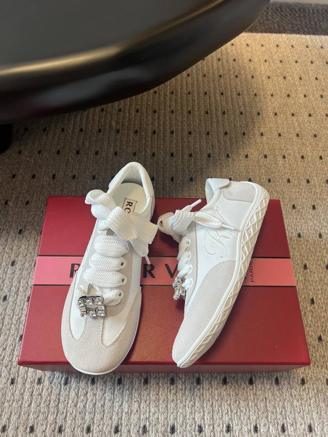 Roger Vivie* 25Ss 新款德训休闲鞋 注重舒适度的宝子一定要留这款!莞产版本,原版开发,版型专柜一比一,细节处理专柜一比一,经典简约的款式设计,百搭不挑人,上脚秀气,轻盈柔软,美貌与实力并存!官网同步的百搭通勤配色闭眼收! 无论脚感还是颜值都是天花板的存在,又轻又软牛津软大底,韧性强 柔软 轻便防滑耐磨,鞋口包边进一步保证上脚舒适感,不磨脚! 鞋面:牛皮 刺绣防水布 内里:牛皮 大底:橡胶大底 Size:35-40 40定制不退换