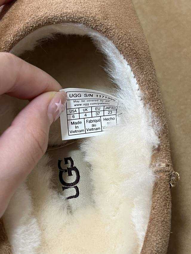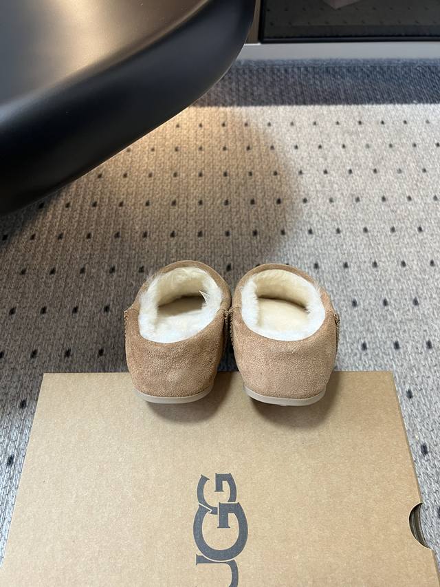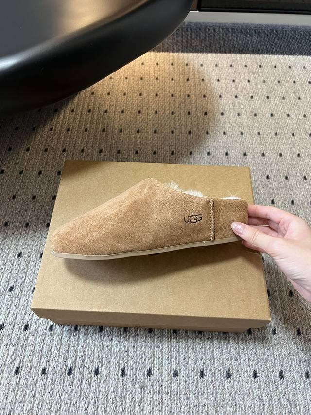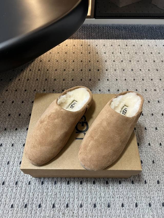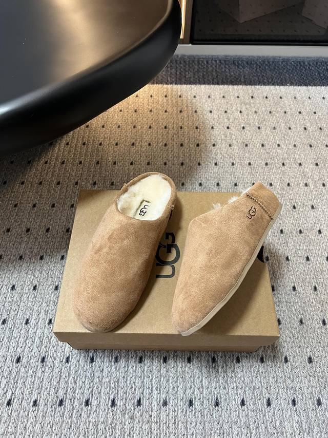 / Ug* 浅口休闲一脚蹬懒人鞋 鞋面采用反绒皮材质,质感细腻且有一定耐磨性;内里填充羊毛材质,保暖性极佳,能在寒冷天气为双脚提供温暖呵护。 可搭配宽松的牛仔裤或直