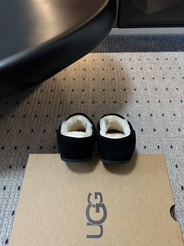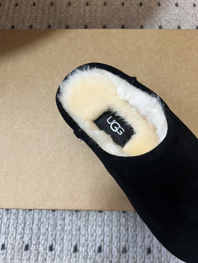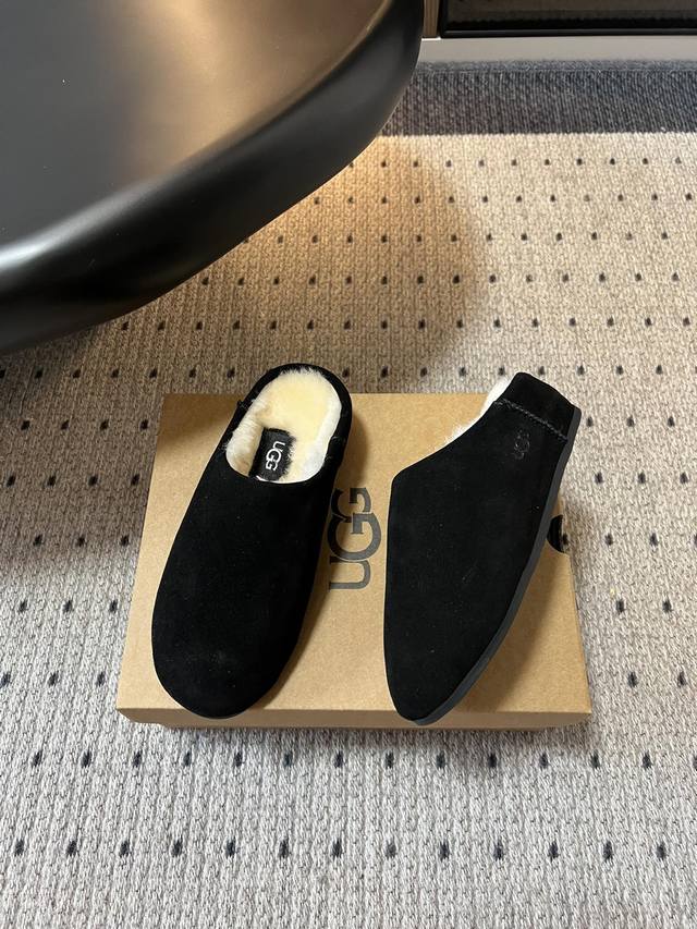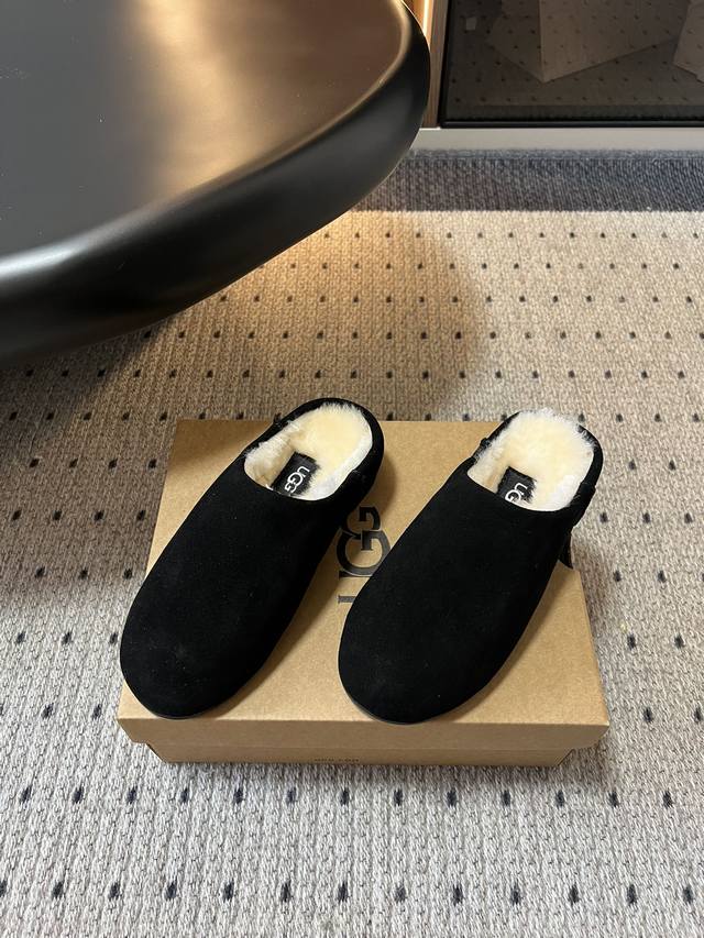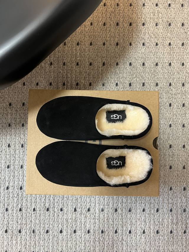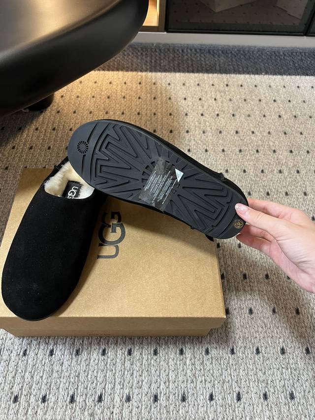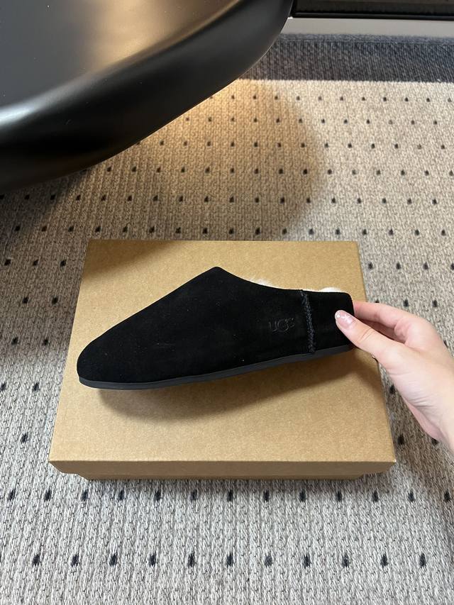 Ug* 浅口休闲一脚蹬懒人鞋 鞋面采用反绒皮材质,质感细腻且有一定耐磨性;内里填充羊毛材质,保暖性极佳,能在寒冷天气为双脚提供温暖呵护。 可搭配宽松的牛仔裤或直