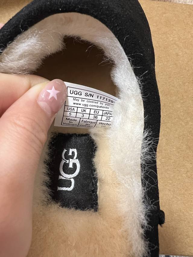 / Ug* 浅口休闲一脚蹬懒人鞋 鞋面采用反绒皮材质,质感细腻且有一定耐磨性;内里填充羊毛材质,保暖性极佳,能在寒冷天气为双脚提供温暖呵护。 可搭配宽松的牛仔裤或直