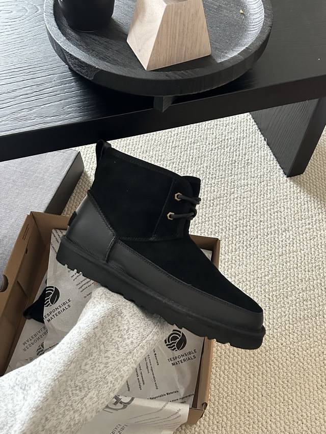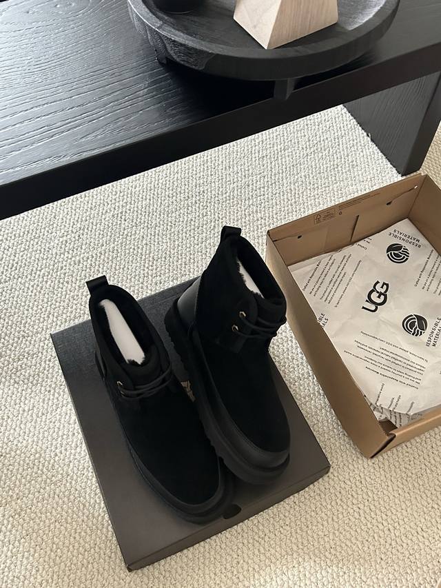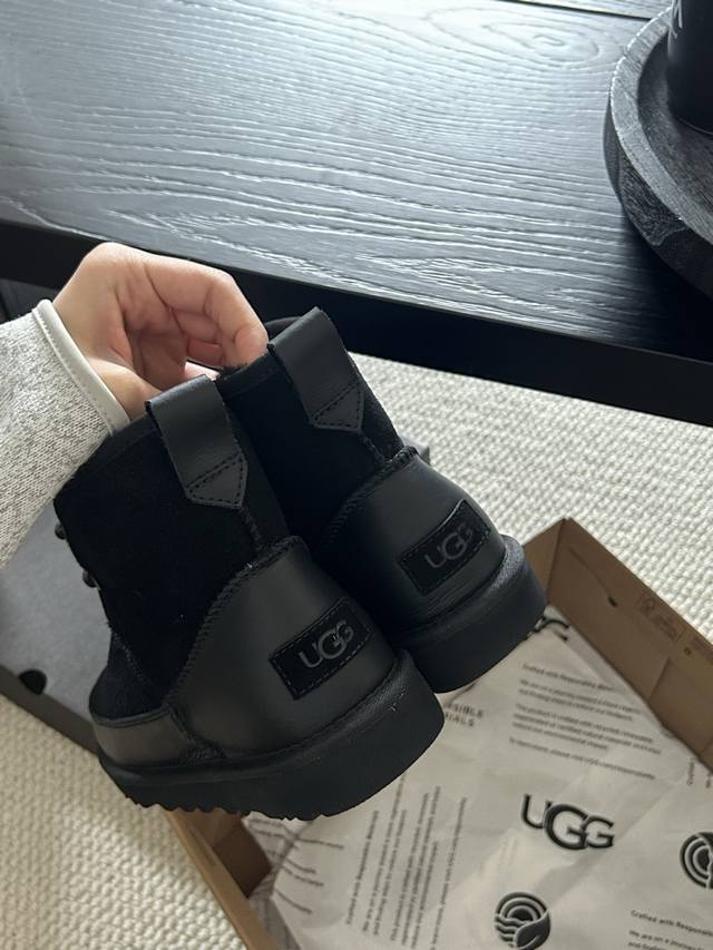 Ugg 短靴高版本,头层牛皮拼接羊皮毛一体,搓衣板1 1大底35-40码
