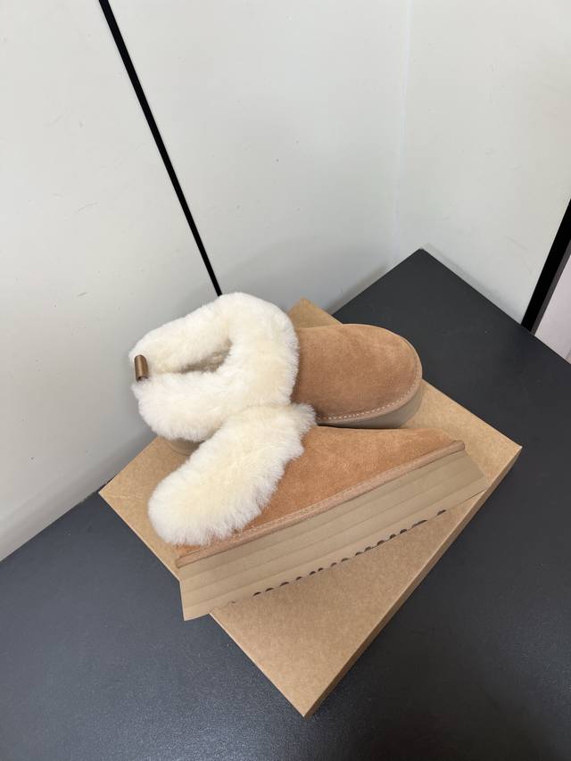 / Ugg秋季圆头厚底茸茸毛鞋 茸茸的鞋领软乎乎的,贴脚脖子舒服厚底设计穿上显高显腿长,这款Ugg懒人毛毛鞋圆头造型很可爱,平时配裤子,裙子都可以最关键是“懒人友好