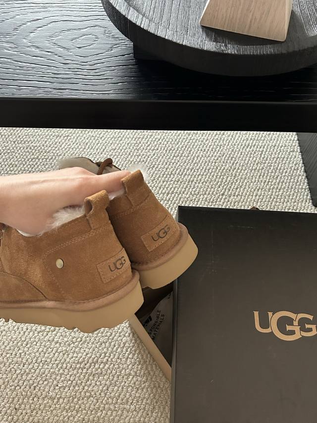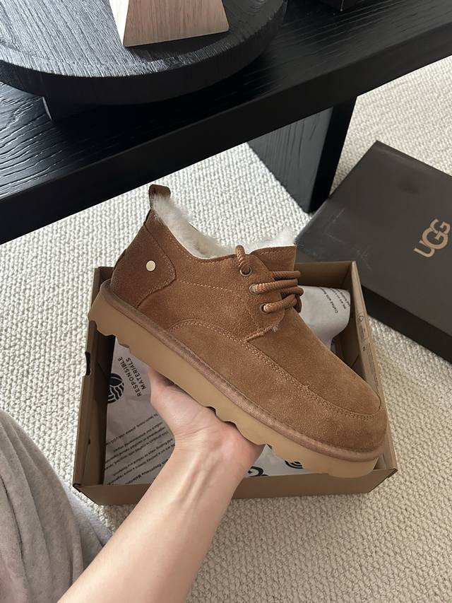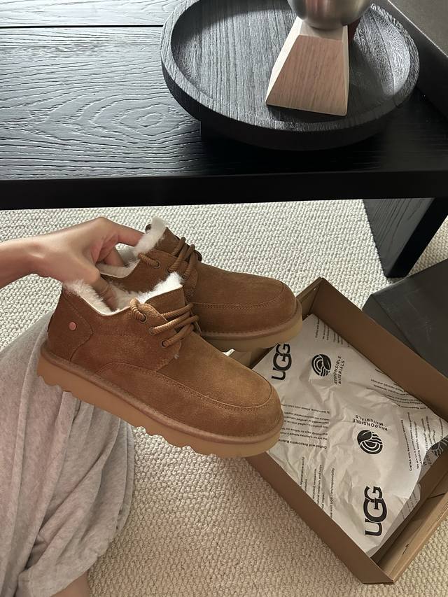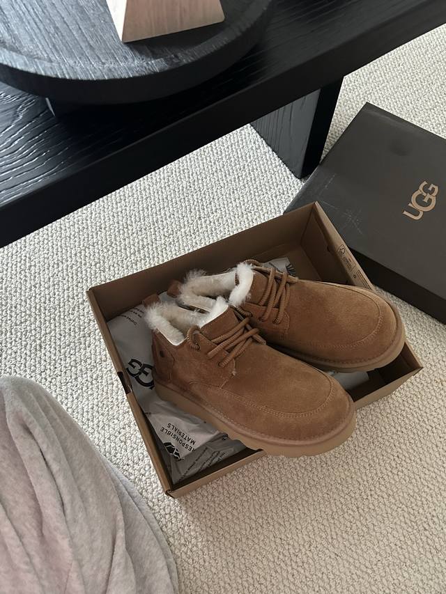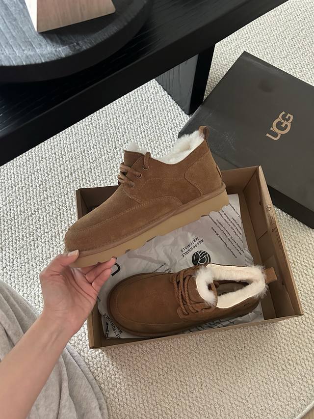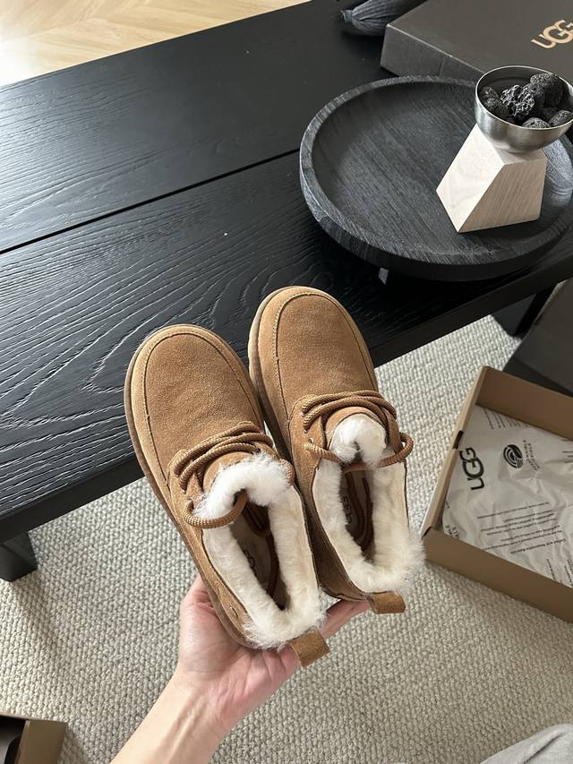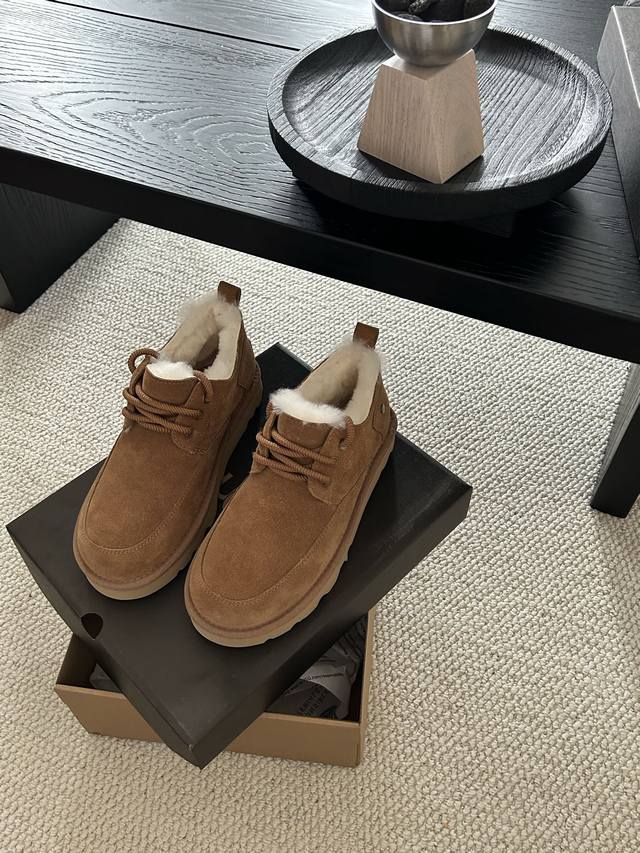 Ugg经典系带男鞋,牛皮羊毛懒人鞋必备一脚蹬! 颜色:羚羊色、栗色 、黑色! 码数:40-44码!