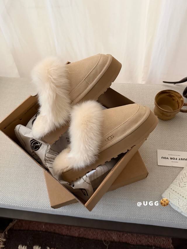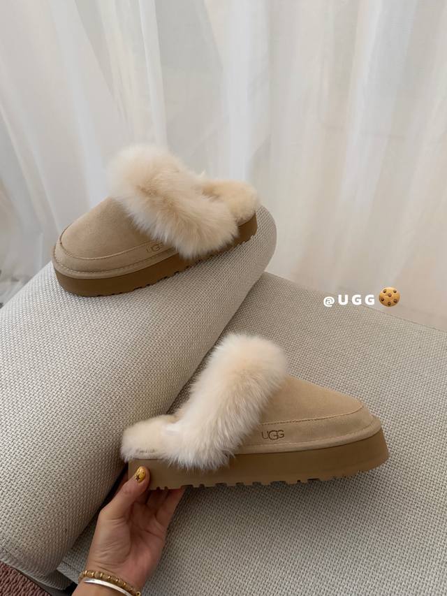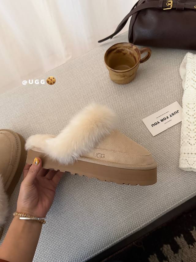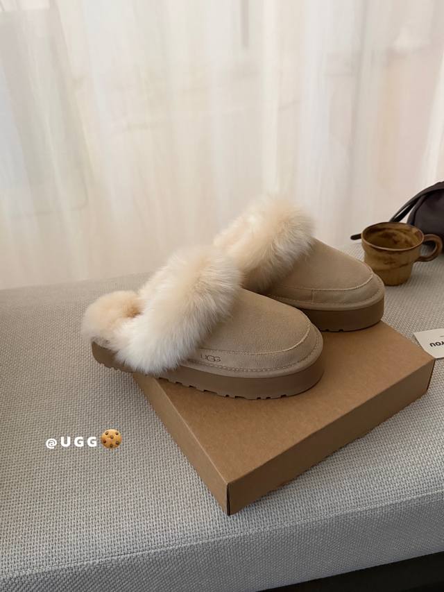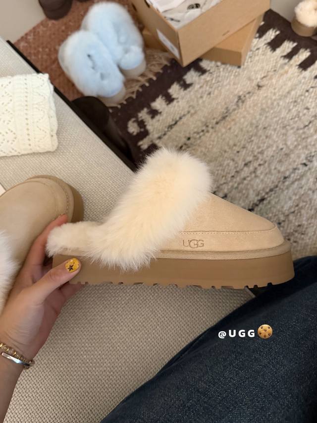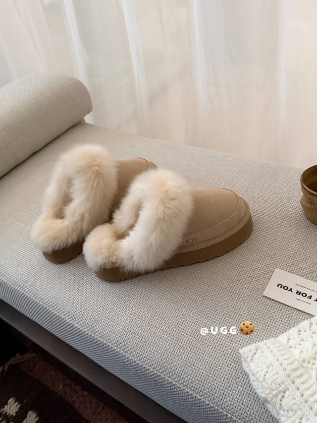 Ugg|蒂茨库特长毛款拖鞋 真的绝了! 翻毛皮鞋面羊皮毛领口 质感直接拉满 像把脚塞进一团暖乎乎的云朵里 厚底显高显腿长 秋冬比例狠狠拿捏 半拖懒人设计 出门一
