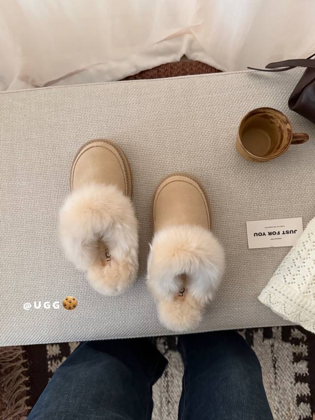 / Ugg|蒂茨库特长毛款拖鞋 真的绝了! 翻毛皮鞋面羊皮毛领口 质感直接拉满 像把脚塞进一团暖乎乎的云朵里 厚底显高显腿长 秋冬比例狠狠拿捏 半拖懒人设计 出门一
