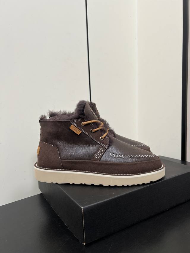 / Ugg2025冬季男士纽姆手作环保款 男士雪地靴|男款 男士系带短靴 以羊皮毛一体的奢宠质感 +Eva防滑大底 这个冬天,让它承包你所有不冻脚的舒适出行,必须把