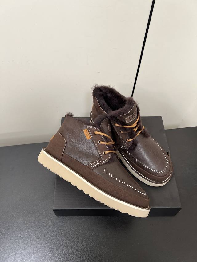 Ugg2025冬季男士纽姆手作环保款 男士雪地靴|男款 男士系带短靴 以羊皮毛一体的奢宠质感 +Eva防滑大底 这个冬天,让它承包你所有不冻脚的舒适出行,必须把加毛的安排上! 码数39-45 45定制不退换