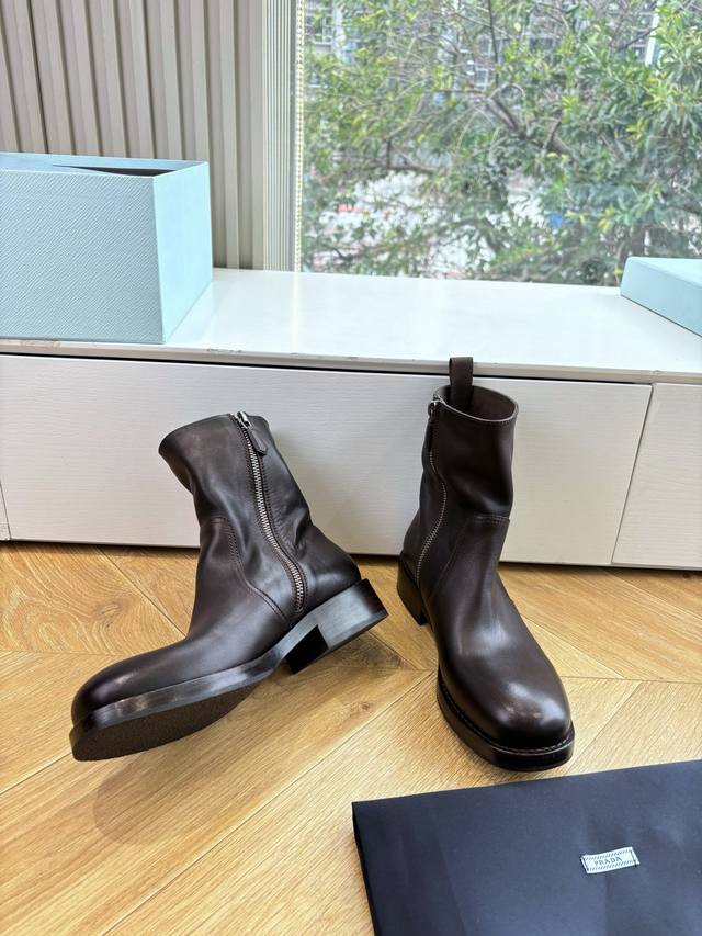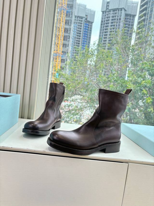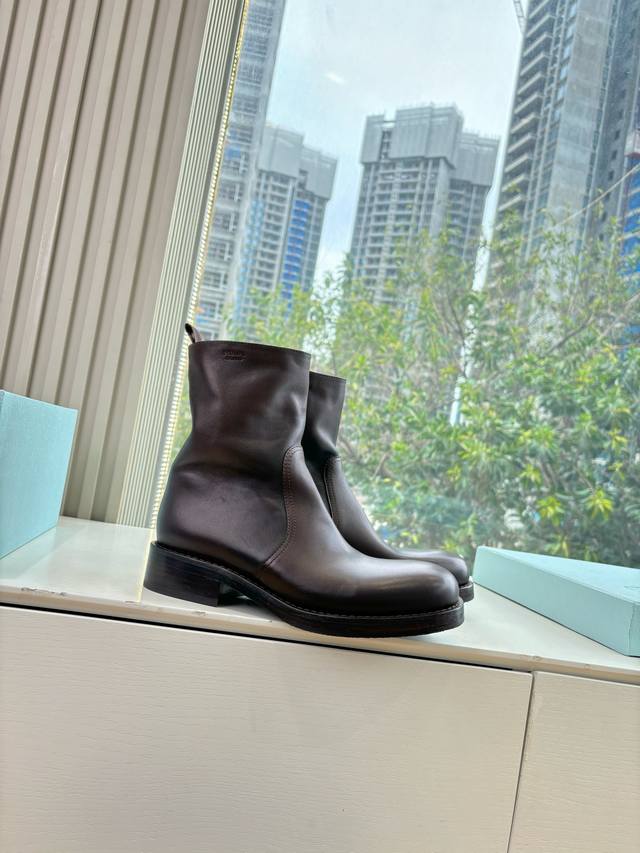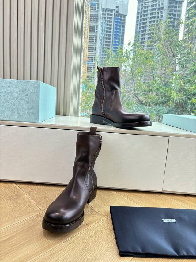 代购级别G067所见即所得prad*普拉达2025秋冬爆款经典款切尔西皱皱靴骑士靴系列 这款上脚超好看.而且可以拉长腿型 市面上鱼龙混杂的货不同,此款卖点在于真