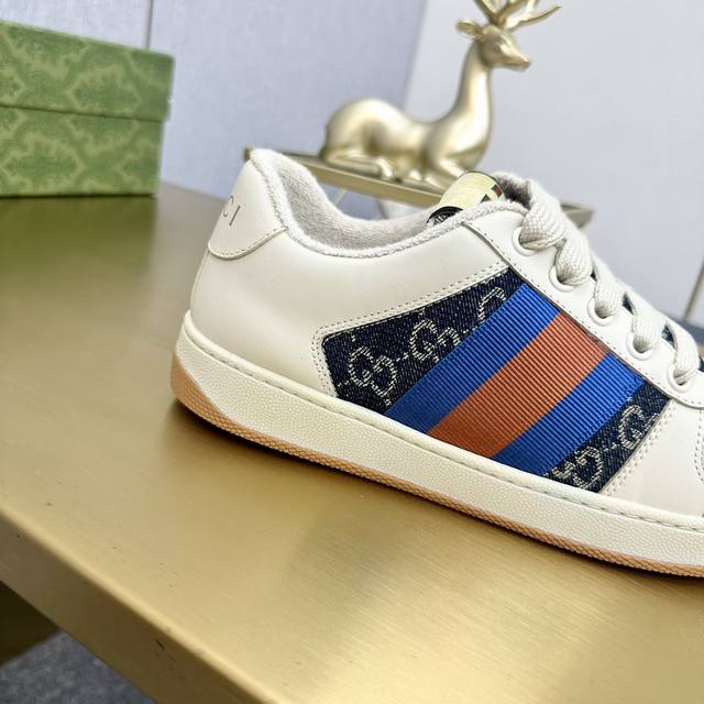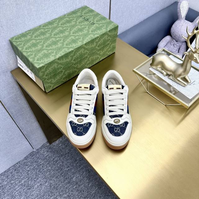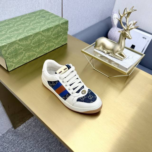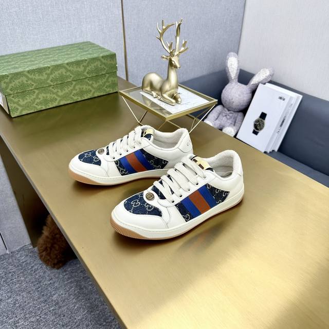 出厂价pp男女码 市场最高版本。 DDD Gucci古驰全新升级后套内里,顶级做旧小脏鞋,Screener 系列饰水晶运动鞋 DDD G小脏鞋镶钻款 蓝色水钻,经典休闲情侣款,复古板鞋做旧G家脏脏鞋,同步专柜更新! DDD ①鞋面增加原版一致的水性涂边工艺市场上的普通油边胶感太强又容易掉!A级头层磨砂皮 带毛孔 对版电脑刺绣双G布,内里高密度毛巾绒。 DDD ②中底板细节上增加了pvc透明小圆标封线,六次开模采用滴珠宝工艺定制双色双G扣,力求做到和原版一样,一对扣子比市面普通扣贵3倍以上。 DDD ③做旧