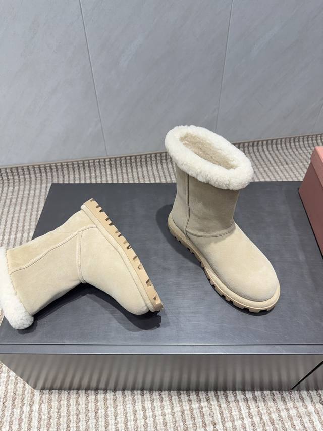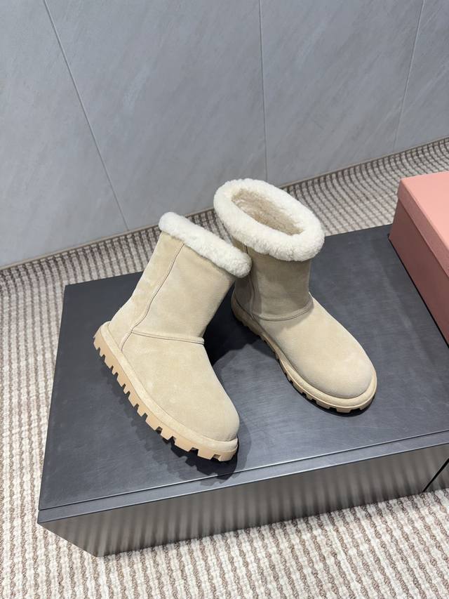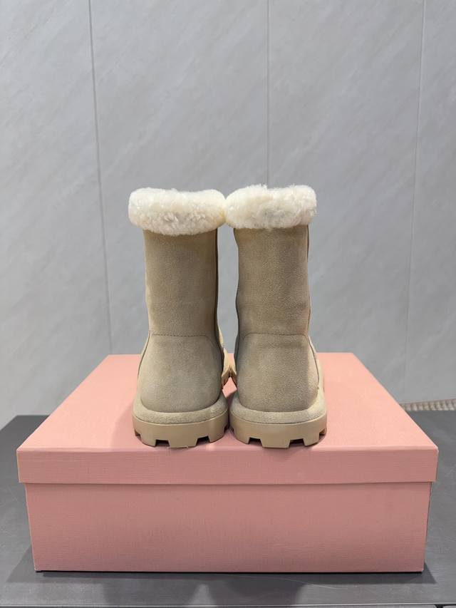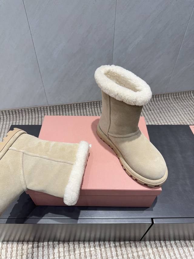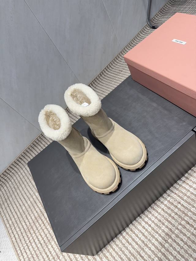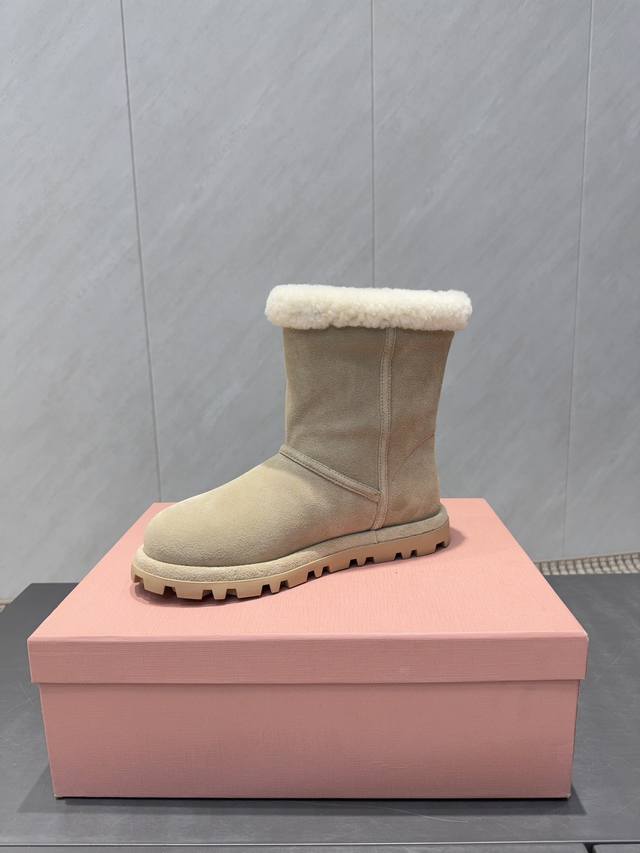 出厂: 独家顶级版本 缪缪Miumiu2025Vs秋冬最新爆款雪地靴系列 圆头厚底雪地靴 来自Miu Miu系列的细节特写 新季的潮流要素 ,与此刻挚爱的概念,