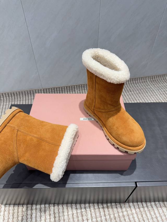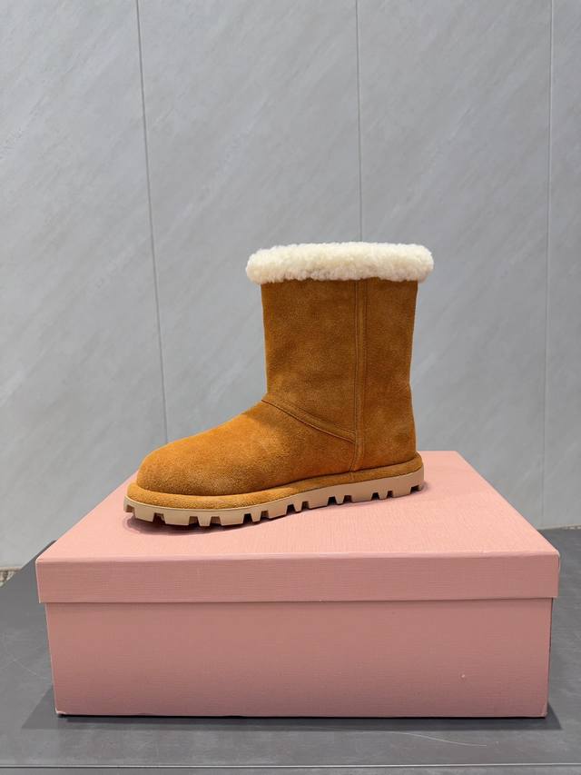 出厂: 独家顶级版本 缪缪Miumiu2025Vs秋冬最新爆款雪地靴系列 圆头厚底雪地靴 来自Miu Miu系列的细节特写 新季的潮流要素 ,与此刻挚爱的概念,
