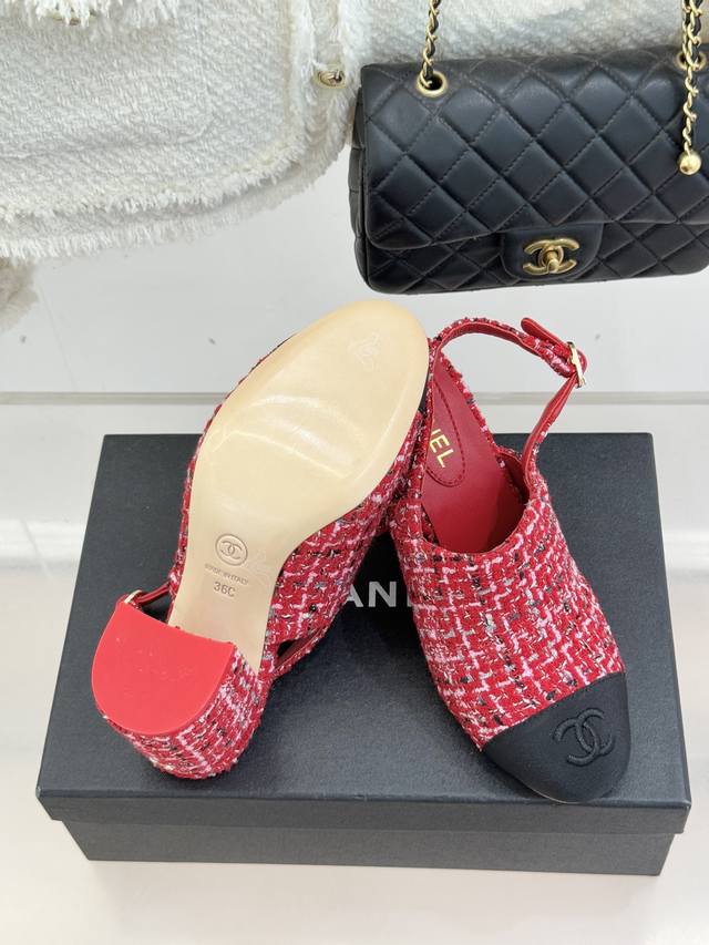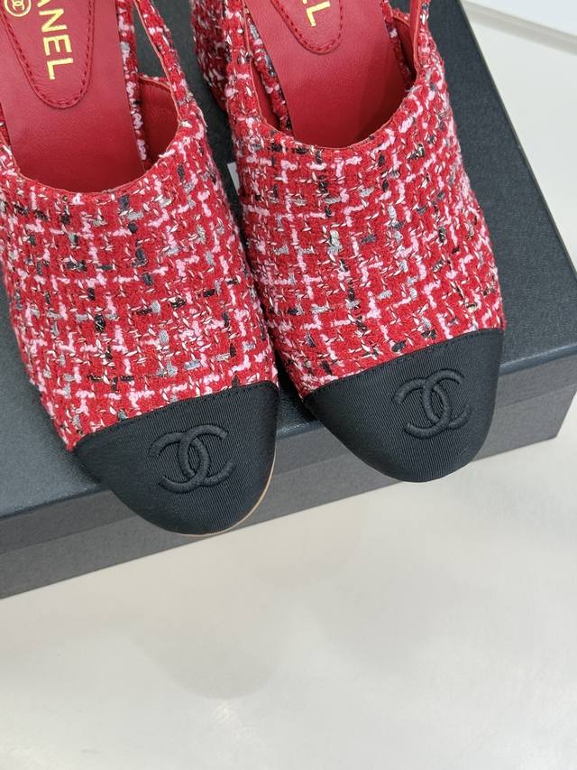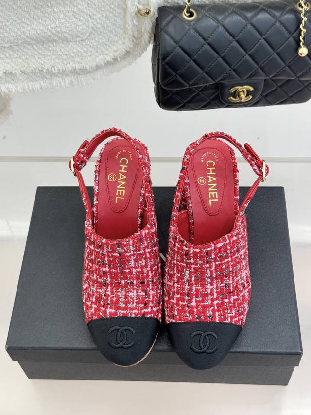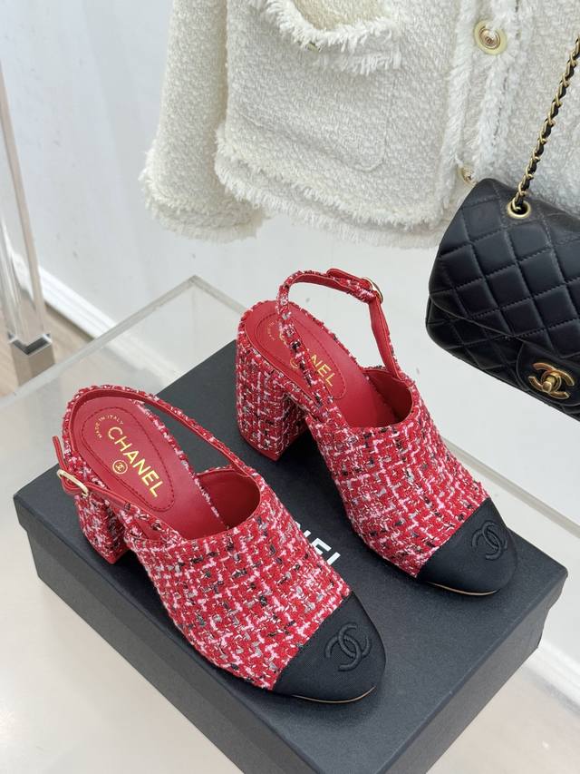 厂价 Chane*|小香25K新品拼色双C 粗跟后空凉鞋 承袭香奈儿百年美学脉络 这双凉鞋以经典符号重构夏日奢雅 将撞色巧思与品牌辨识度融于方寸鞋履 鞋身头缀以