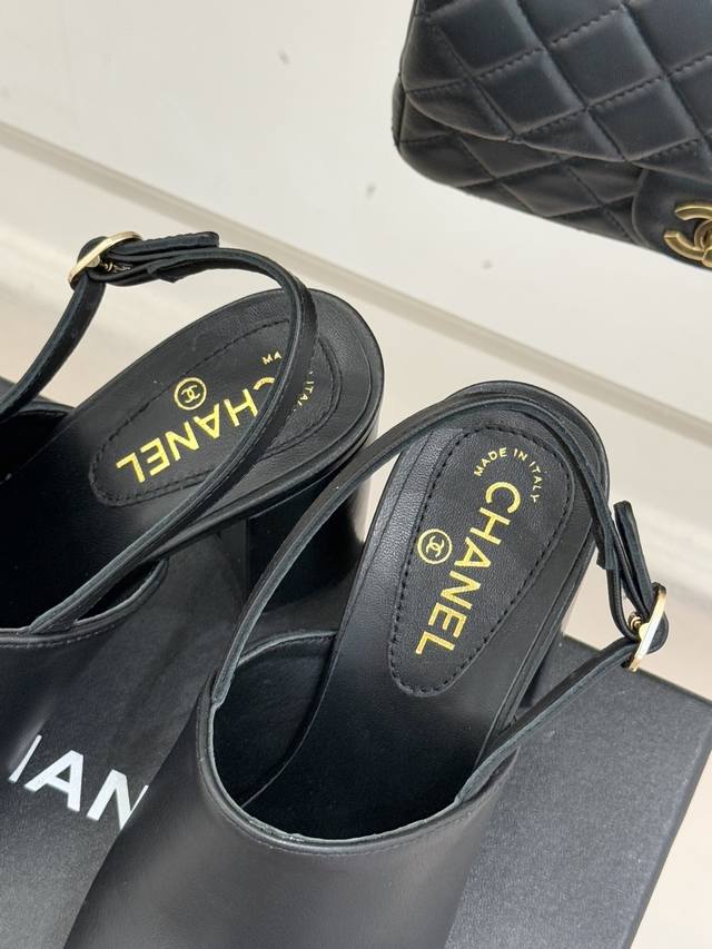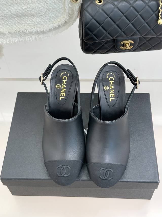 厂价 Chane*|小香25K新品拼色双C 粗跟后空凉鞋 承袭香奈儿百年美学脉络 这双凉鞋以经典符号重构夏日奢雅 将撞色巧思与品牌辨识度融于方寸鞋履 鞋身头缀以