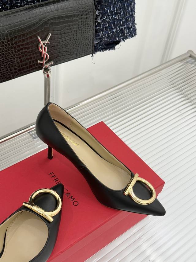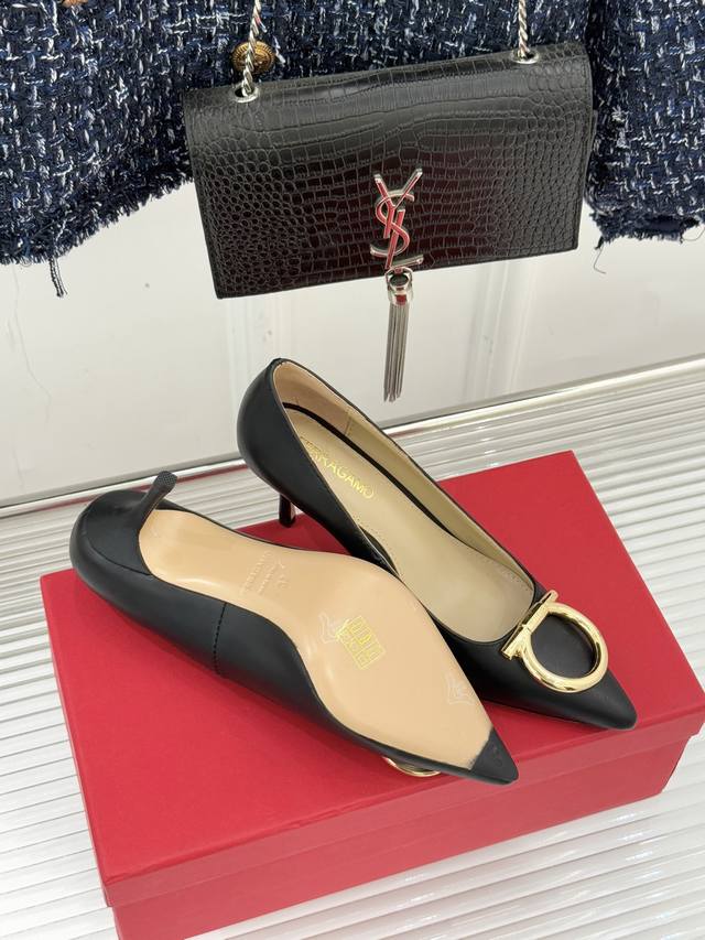 厂价 Ferragamo 菲拉格慕25Wf新品 大金属扣尖头高跟鞋 承袭品牌百年制鞋基因 将芭蕾艺术的灵动气韵与经典格调相融 解锁当代女性的多元优雅表达。 利落