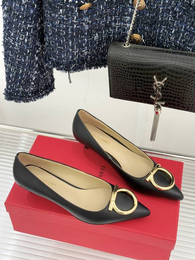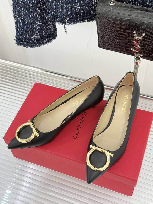 厂价 Ferragamo 菲拉格慕25Wf新品 大金属扣尖头高跟鞋 承袭品牌百年制鞋基因 将芭蕾艺术的灵动气韵与经典格调相融 解锁当代女性的多元优雅表达。 利落