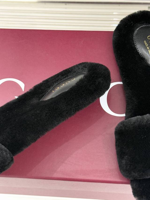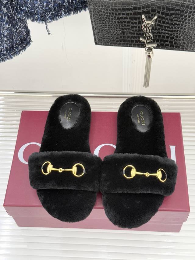 厂价 DDD Gucci 古驰25Wf秋冬马衔扣 DDD 一字带平底毛拖 DDD 承续品牌百年马术基因 DDD 浅金色马衔扣金属件缀于鞋面 DDD 利落勾勒一字带线条 DDD 既是G家标志性符号的鲜活演绎 DDD 更藏着复古雅致的格调底蕴 DDD 甄选细腻丰盈羊毛材质 DDD 经多道工艺精细处理 DDD 上脚便裹住脚踝暖意 DDD 兼顾透气属性与保暖性能 DDD 秋冬穿搭无惧凉意侵袭 DDD 每一步都似陷柔软云朵。 DDD 既是秋冬保暖刚需单品 DDD 更是彰显品味的穿搭利器 DDD 踩上即是质感与舒适的