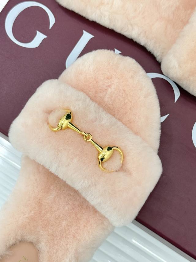 厂价 DDD Gucci 古驰25Wf秋冬马衔扣 DDD 一字带平底毛拖 DDD 承续品牌百年马术基因 DDD 浅金色马衔扣金属件缀于鞋面 DDD 利落勾勒一字带线条 DDD 既是G家标志性符号的鲜活演绎 DDD 更藏着复古雅致的格调底蕴 DDD 甄选细腻丰盈羊毛材质 DDD 经多道工艺精细处理 DDD 上脚便裹住脚踝暖意 DDD 兼顾透气属性与保暖性能 DDD 秋冬穿搭无惧凉意侵袭 DDD 每一步都似陷柔软云朵。 DDD 既是秋冬保暖刚需单品 DDD 更是彰显品味的穿搭利器 DDD 踩上即是质感与舒适的
