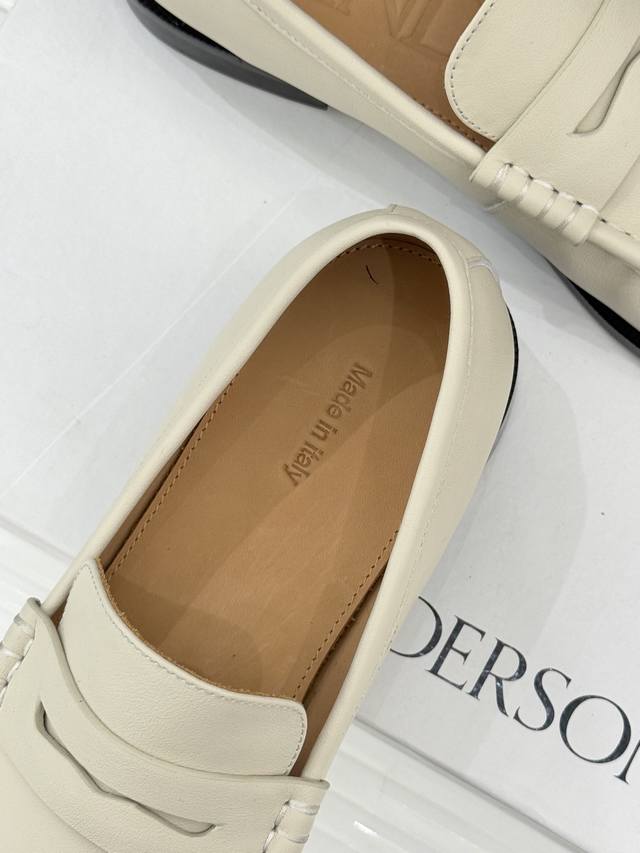 厂价 DDD Jw Anderson25Wf新品复古极简乐福鞋 DDD 当复古韵律碰撞极简哲思 DDD 这双鞋便有了跨越风格的质感张力 DDD 以意大利精湛工艺为骨 以低调设计为魂 DDD 成为衣橱里自带高级感的百搭利器。 DDD 平底鞋型兼顾稳妥支撑与慵懒调性 DDD 一脚蹬穿法适配快节奏日常 DDD 让每一步行走都自带松弛质感 DDD 用克制美学诠释当代穿搭的从容态度, DDD 成为跨越季节 百搭不腻的衣橱刚需。 DDD 面料采用原版定制小牛皮 DDD 内里踮脚均为牛皮 DDD 原版开模定制防滑大底