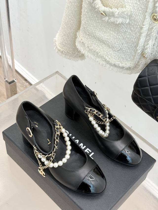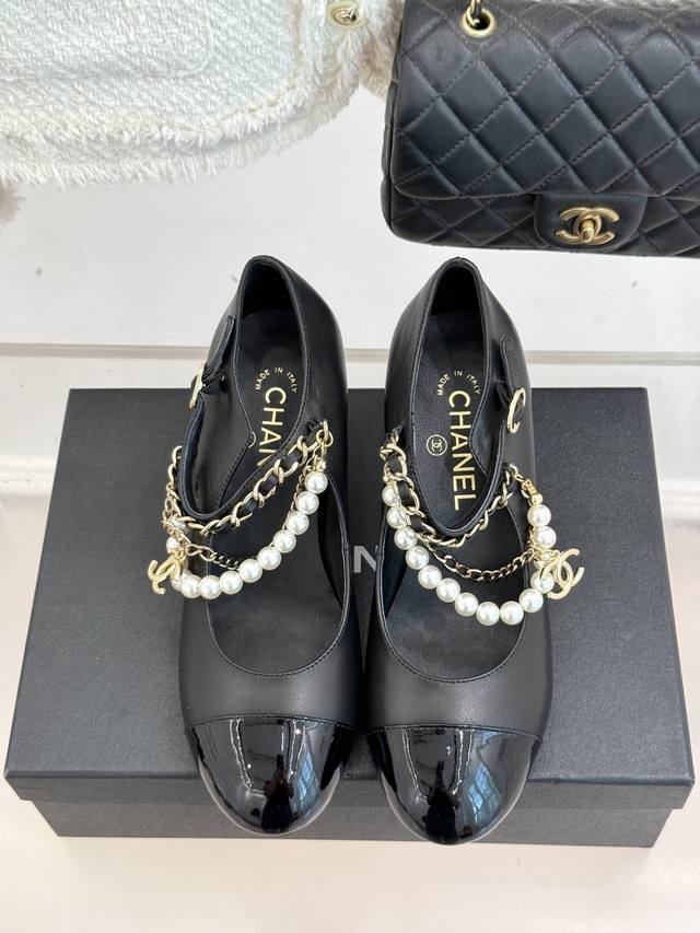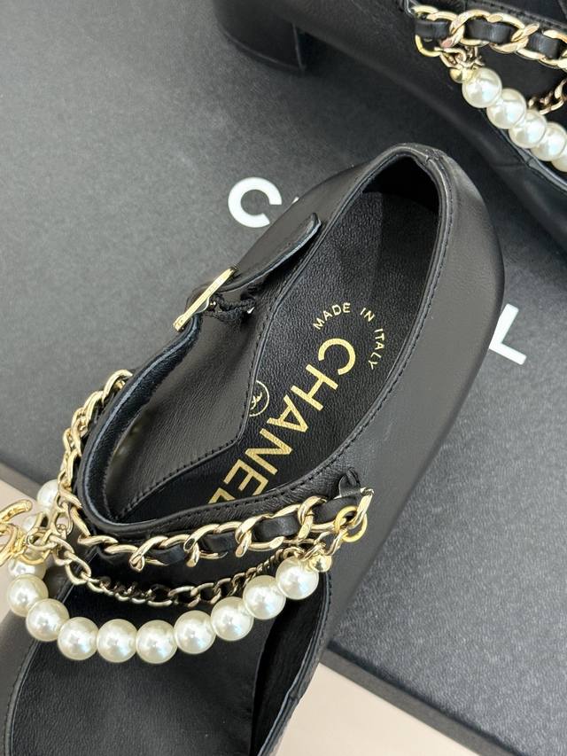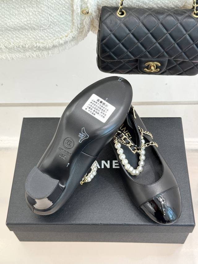 厂价p平底 高跟 DDD Chane*|小香25B珍珠链条双C玛丽珍鞋 DDD 这双玛丽珍鞋 无疑是优雅与精致的完美结晶, DDD 每一处细节都散发着独属于香奈儿的高级魅力。 DDD 鞋面上 标志性的双C Logo以立体金属质感呈现 DDD 彰显着品牌的深厚底蕴与奢华品质 。 DDD 双C金属扣旁珍珠链条蜿蜒而下 DDD 颗颗圆润饱满的珍珠紧密排列 DDD 与闪耀的金属链条交织 复古与现代元素融合 DDD 为鞋子增添了一抹灵动的奢华感 DDD 每一步都伴随着链条的轻微晃动 DDD 奏响专属的时尚乐章。 D