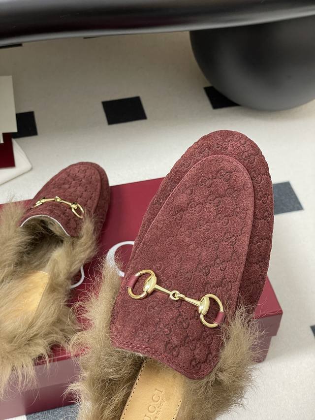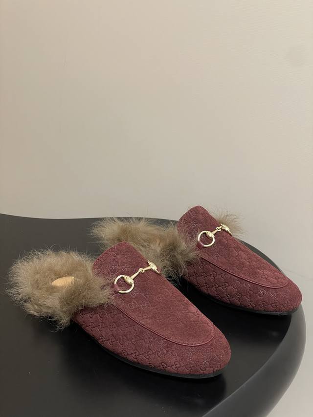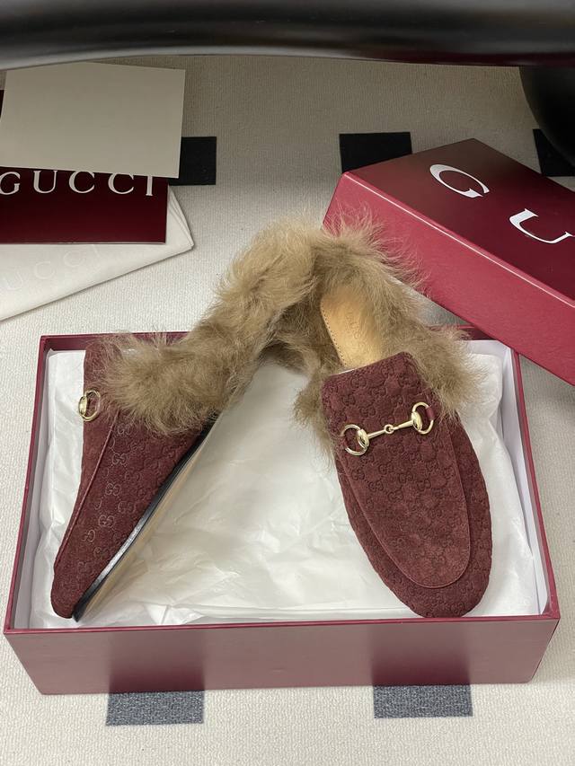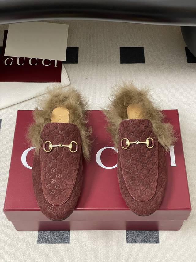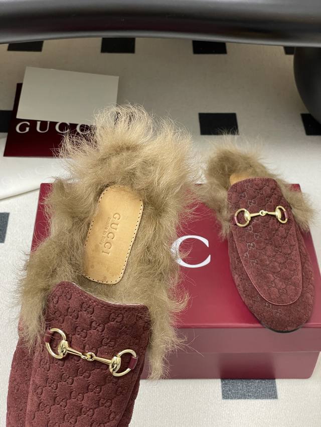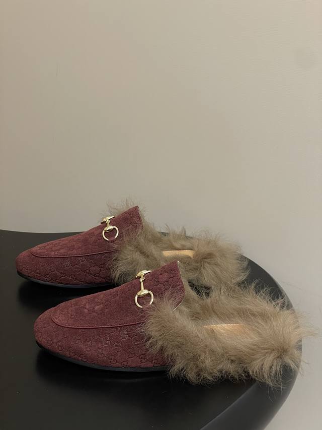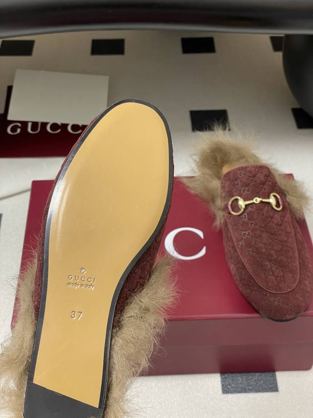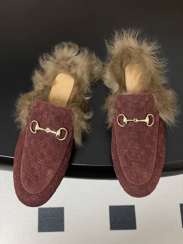 / 古驰princetown经典羊毛拖鞋,双G绒面穆勒鞋马衔扣平底半拖鞋托斯卡纳毛拖鞋. 这款鞋履材质柔软,廊形精致流畅,彰显日常优雅风范! 鞋面原版双G绒面 牛皮