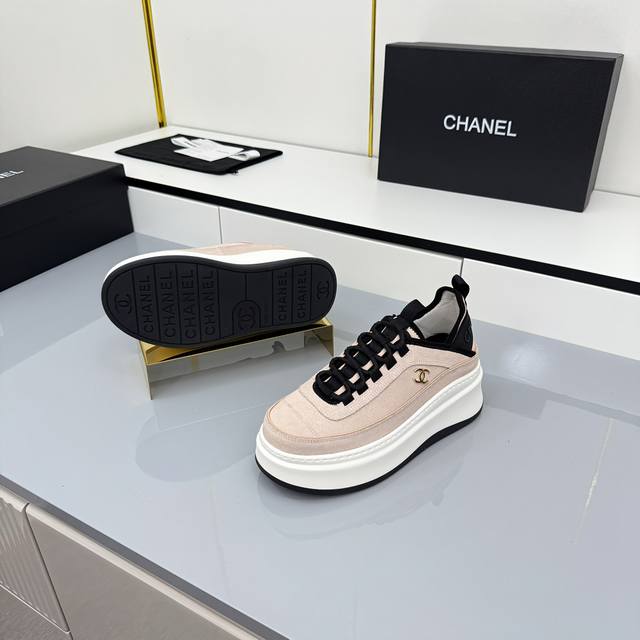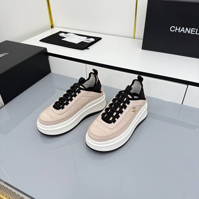 女码 Chanel香奈儿休闲厚底增高鞋 2025专柜顶级休闲款运动鞋 这款经典设计;鞋面多种工艺电绣的风格;大底却时尚运动;不平凡的拥入了多种配色元素 多元化混