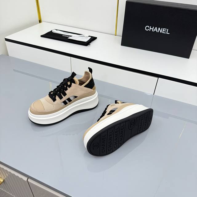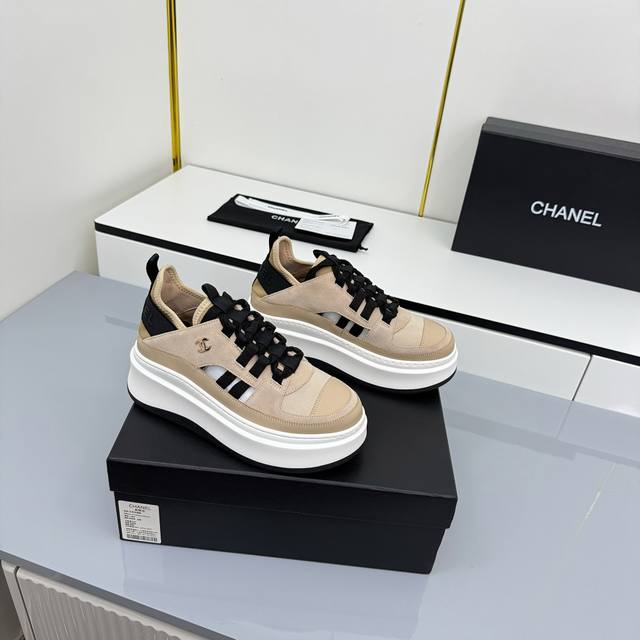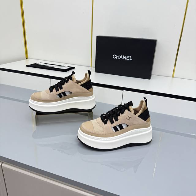 女码 Chanel香奈儿休闲厚底增高鞋 2025专柜顶级休闲款运动鞋 这款经典设计;鞋面多种工艺电绣的风格;大底却时尚运动;不平凡的拥入了多种配色元素 多元化混
