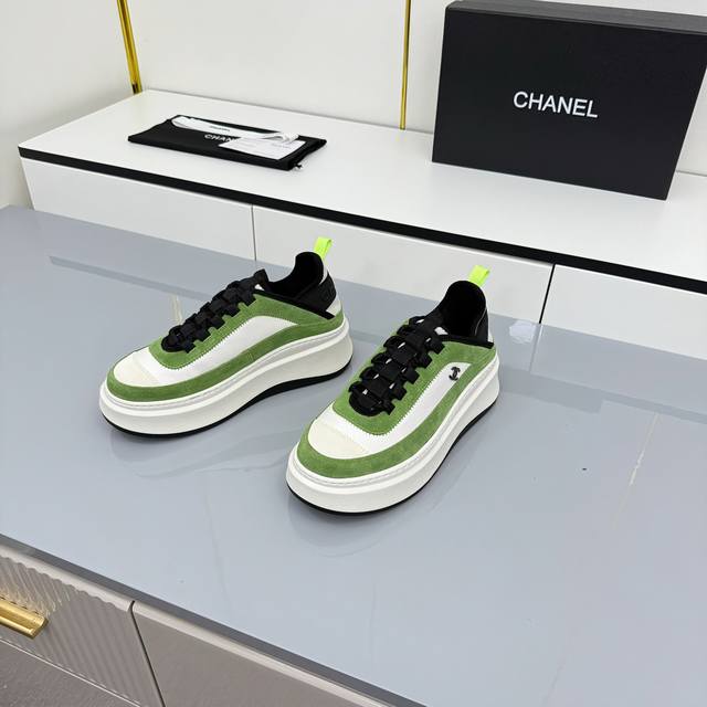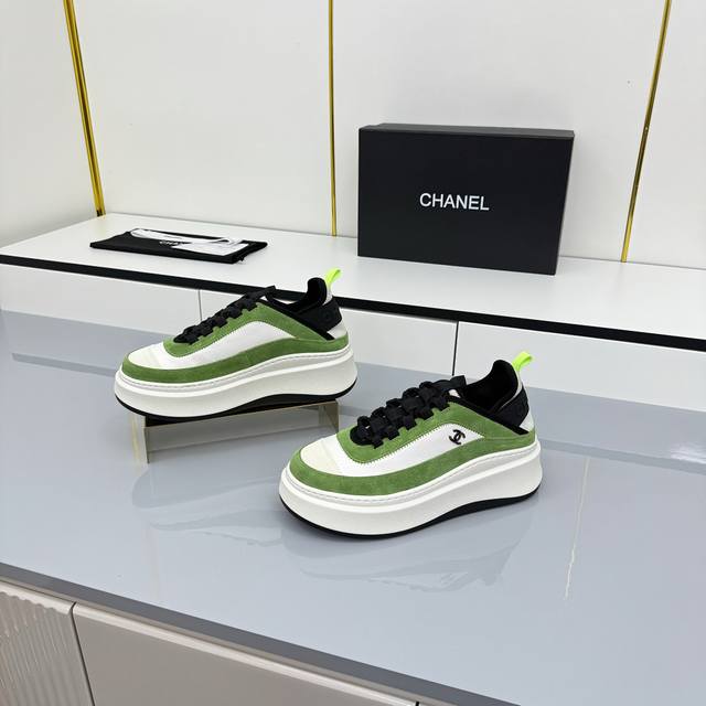 女码 Chanel香奈儿休闲厚底增高鞋 2025专柜顶级休闲款运动鞋 这款经典设计;鞋面多种工艺电绣的风格;大底却时尚运动;不平凡的拥入了多种配色元素 多元化混