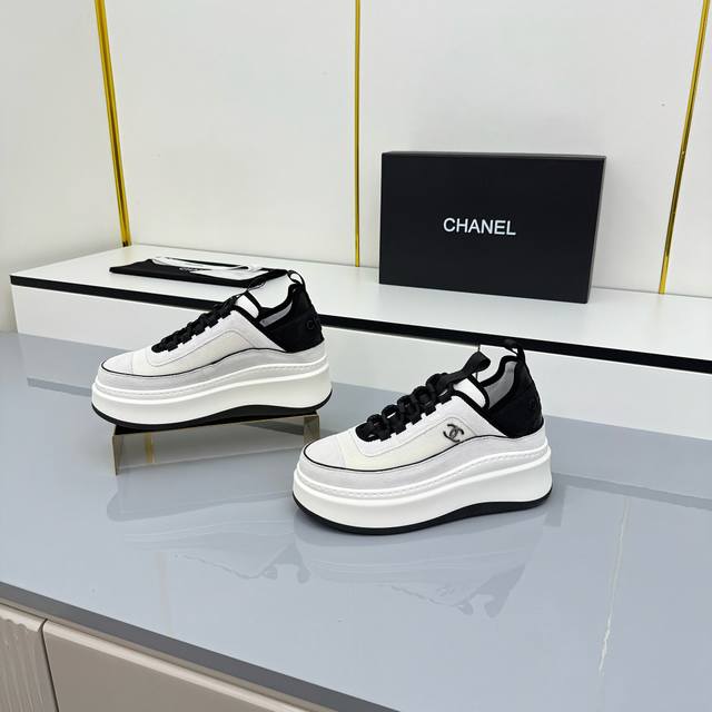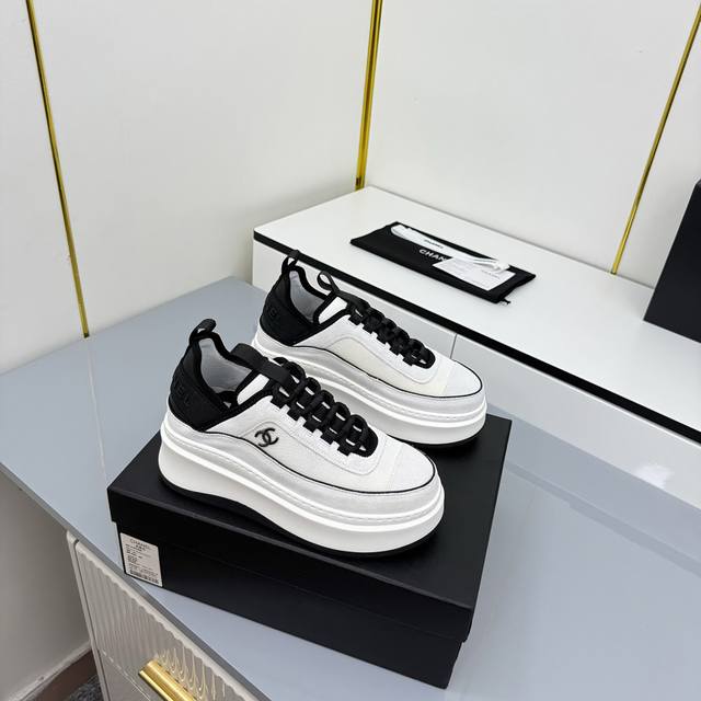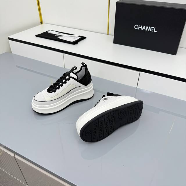 女码 Chanel香奈儿休闲厚底增高鞋 2025专柜顶级休闲款运动鞋 这款经典设计;鞋面多种工艺电绣的风格;大底却时尚运动;不平凡的拥入了多种配色元素 多元化混
