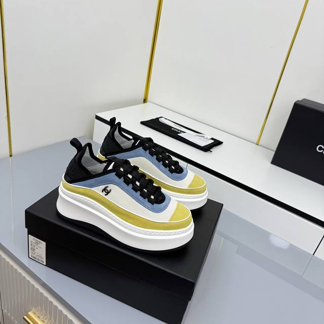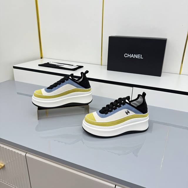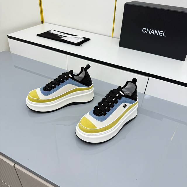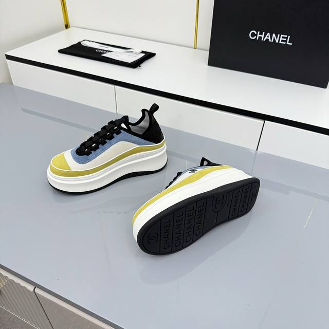 女码 Chanel香奈儿休闲厚底增高鞋 2025专柜顶级休闲款运动鞋 这款经典设计;鞋面多种工艺电绣的风格;大底却时尚运动;不平凡的拥入了多种配色元素 多元化混