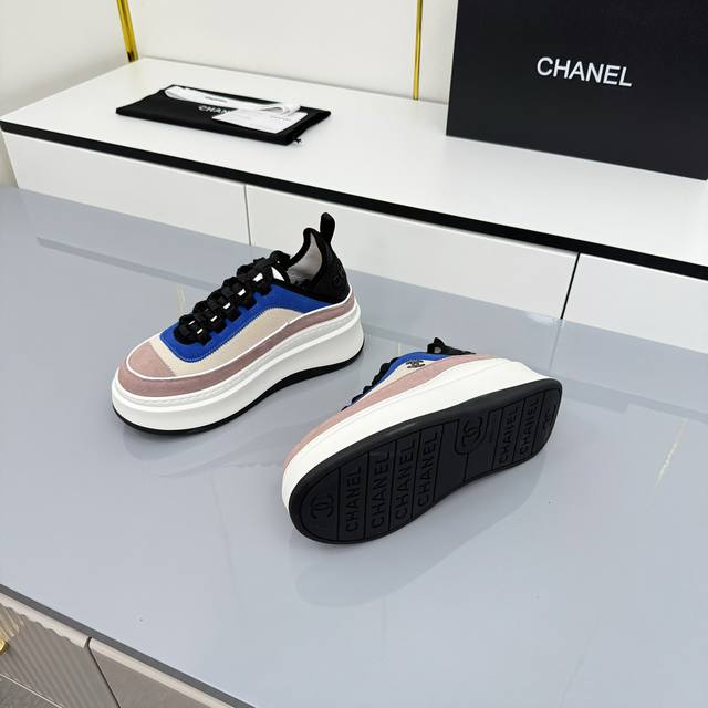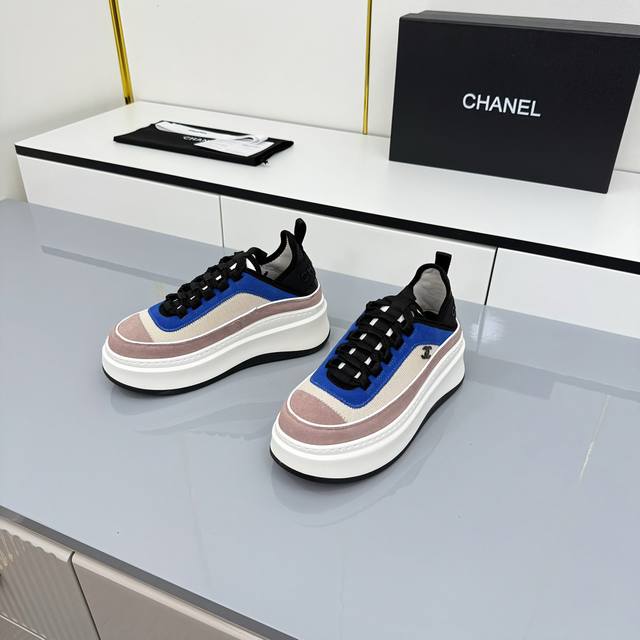 女码 Chanel香奈儿休闲厚底增高鞋 2025专柜顶级休闲款运动鞋 这款经典设计;鞋面多种工艺电绣的风格;大底却时尚运动;不平凡的拥入了多种配色元素 多元化混