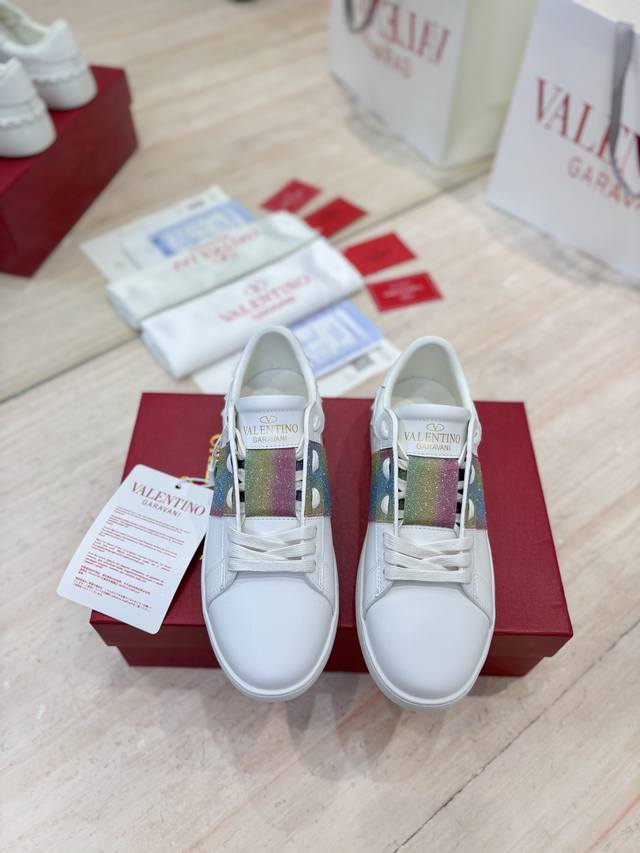 工厂p价 顶级系列 Valentino华伦天奴Garavani Open Disco 铆钉 厚底 休闲 运动鞋 小白鞋 原版购入开发 做货 V家经典系列 柳钉小
