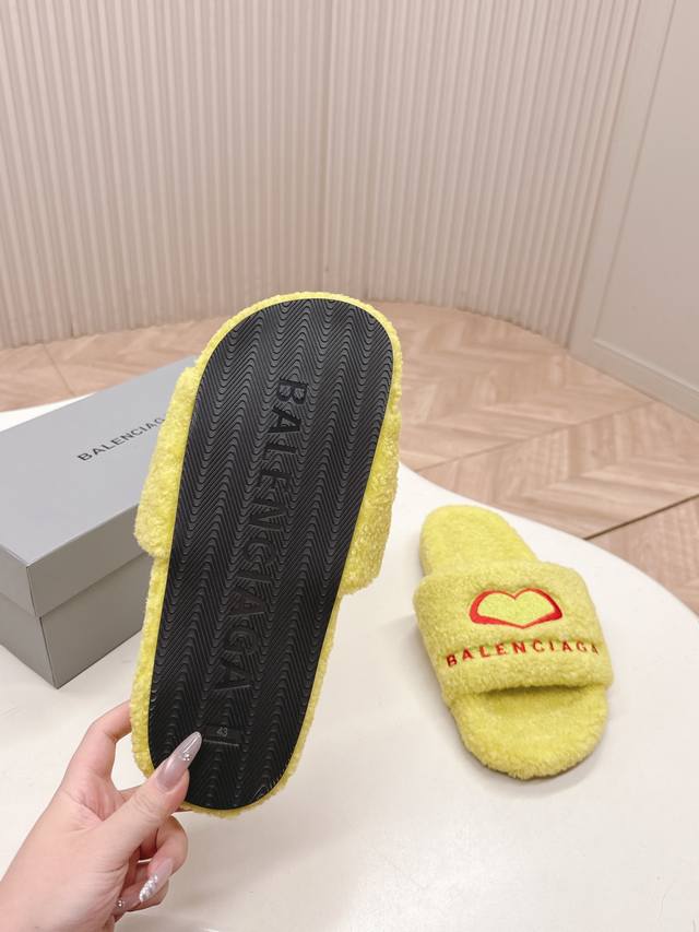 工厂p价p 薄底款 独家顶级版本 DDD Balenciaga Ss25 New Arrival~ DDD 巴黎世家新款厚底毛拖 DDD 鞋面精致Logo点缀+爱心鞋底增高5Cm DDD 穿上秒变大长腿~好看又时髦~慵懒随性~ DDD 增高效果很不错秋冬搭配决绝子单品 DDD 面料:羊卷毛+刺绣字母Logo DDD 鞋底:原版防滑耐大底 DDD 码数: 35-39 40.41订做不退不换 DDD 包装: 原版全套包装 DDD 颜色: 官网同步更新 DDD