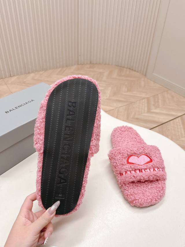 工厂p价p 薄底款 独家顶级版本 DDD Balenciaga Ss25 New Arrival~ DDD 巴黎世家新款厚底毛拖 DDD 鞋面精致Logo点缀+爱心鞋底增高5Cm DDD 穿上秒变大长腿~好看又时髦~慵懒随性~ DDD 增高效果很不错秋冬搭配决绝子单品 DDD 面料:羊卷毛+刺绣字母Logo DDD 鞋底:原版防滑耐大底 DDD 码数: 35-39 40.41订做不退不换 DDD 包装: 原版全套包装 DDD 颜色: 官网同步更新 DDD