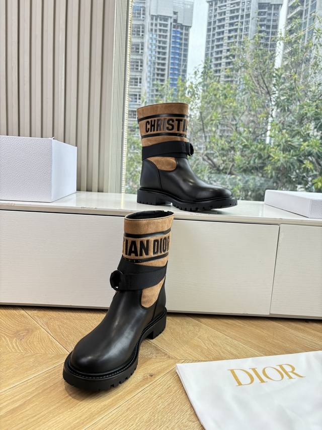 G133Miss Dior 迪奥 Cd 2025秋冬羽绒靴 Miss Dior 迪奥 Cd2025秋冬最新色高定海报款D-Major拼色字母Logo 圆头中筒涂