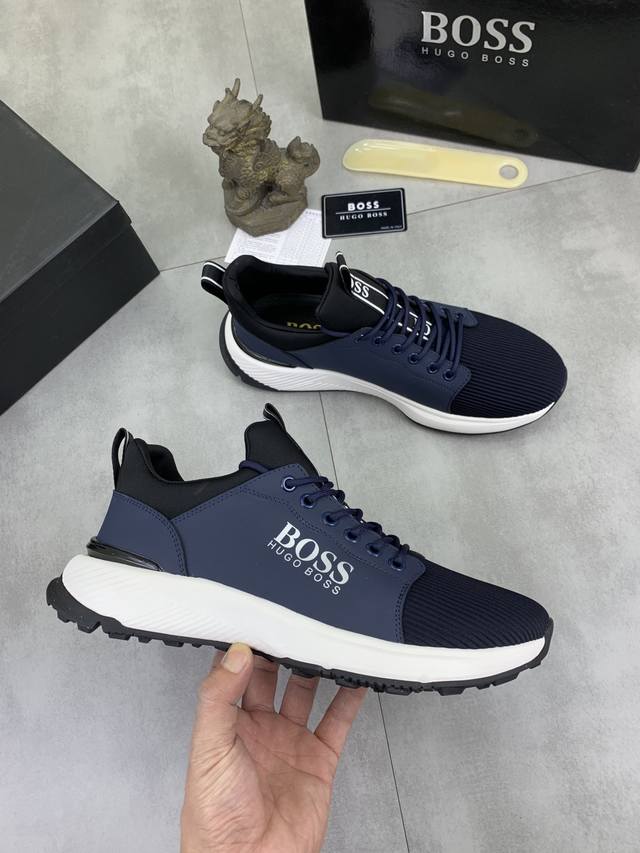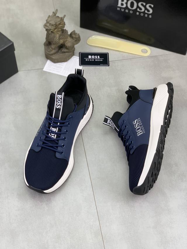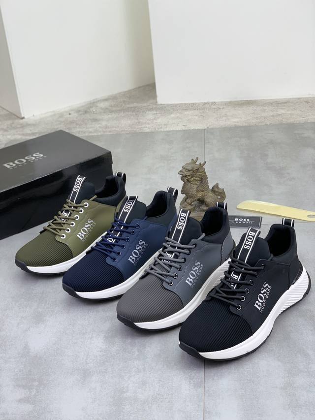 调工厂p价 男装男鞋 运动原单 Boss 原版系带男鞋 经典高帮款休闲鞋本款是官方主打经典款,质量,原厂名师制作,采用进口飞织透气面料舒适透气网布內里羊皮鞋垫,完美楦型,大方时尚的设计,吸引了众多消费者的追捧,适合司机驾车行驶,要的就是市场最品质,颜色:4色可选 码数:38--44 45 定做 DDD