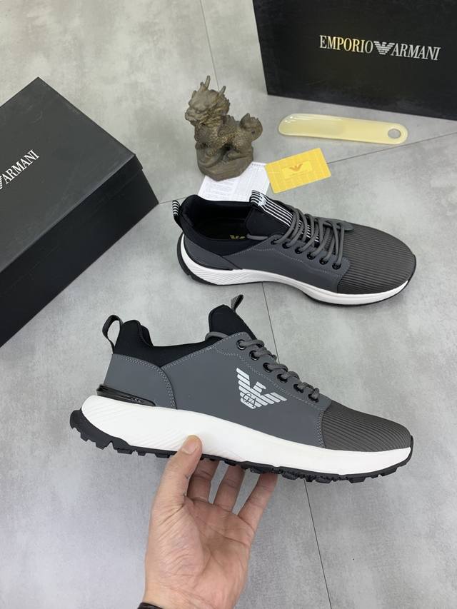 调工厂p价 男装男鞋 运动原单 Giorgio Armani阿玛尼新款休闲运动男鞋到货,Kint-And-Leather Snakers新秀首发 DDD 这款提供原创设计,并与创新面料相结合,进口牛皮压纹立体感十足!打造富有现代气息的高科技造型,是都市生活的理想鞋履,呈现一丝动感气息,营造洋溢年轻活力!透气水洗羊里,防滑耐磨高弹发泡超轻大底经久耐穿,确保支撑力与稳定性,穿着舒适不凡。具备出众的摩擦力、减震效果和适度支撑,舒适不凡,性能优异,值得拥有!码数:38-44 45定做 颜色:4色可选 DDD