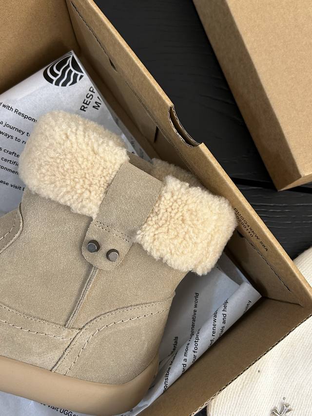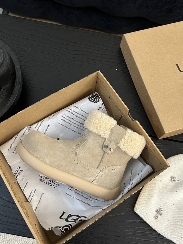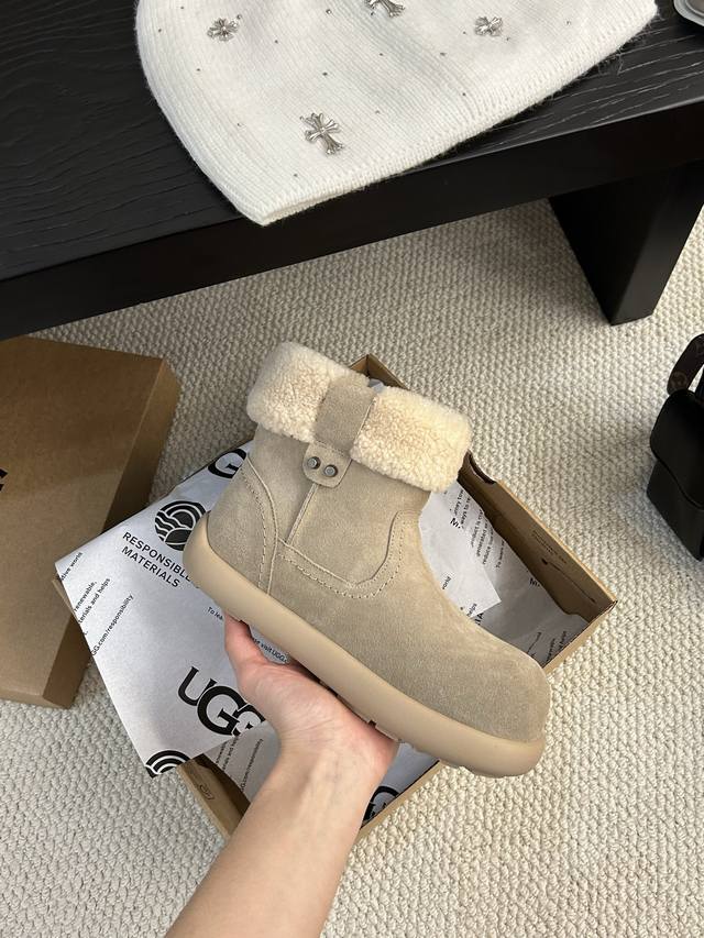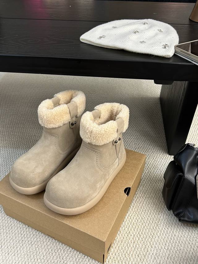 / 这款Ugg泰迪卷毛饰扣短靴,翻毛皮鞋面+羊毛鞋口,内里也是羊毛,保暖力满分!卷毛饰扣设计超有韩系氛围感,搭配卫衣、套装都很出片,通勤休闲都Ok! 颜色:栗色、巧