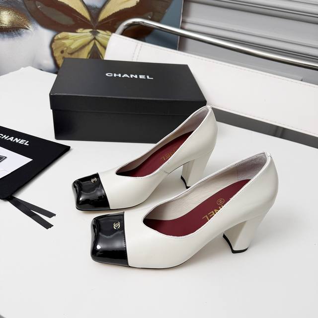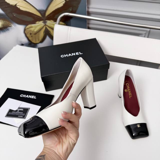 东莞代购级 官网同步盒包装 Chanel中古方头粗跟鞋中跟鞋...