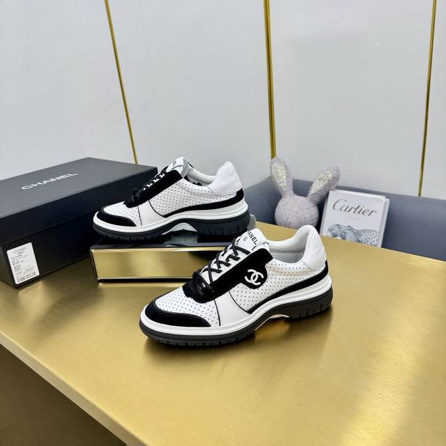 高版本 DDD Chanel香奈儿新款熊猫板鞋熊猫鞋 DDD 香奈儿2025Ss火爆熊猫鞋配色厚底休闲运动鞋板鞋 DDD 专柜同步 专柜非常火爆 非常难买的一款鞋 全网最火的厚底熊猫鞋 可想而知小香控不可错过的 颜值与舒适并存的 简约百搭小白鞋 厚底增高超级百搭,闭眼入谁穿谁好看 DDD 鞋面:小牛皮 DDD 内里:进口羊皮里 DDD 大底:Tpu原版大底 DDD 码数: 35-40 41 定做 DDD